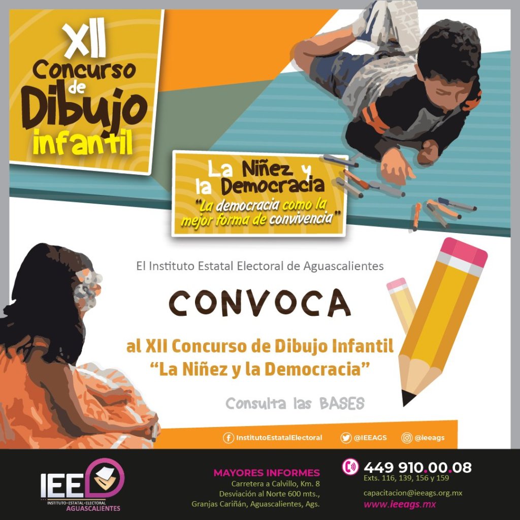 El Instituto Estatal Electoral de Aguascalientes (IEE), a través de la Dirección de Capacitación y Organización Electoral, publicó la convocatoria para el XII Concurso de Dibujo Infantil “La niñez y la Democracia”, con el que se busca fomentar la cultura democrática en este sector de la población.