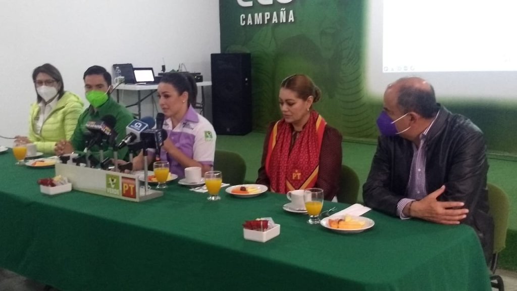 En rueda de prensa celebrada en la sede del Partido Verde, acompañada por los dirigentes estatales del PVEM y PT, Misael Girón Montoya y Héctor Quiroz García, respectivamente, además de la diputada local del Verde, Genny López Valenzuela y la legisladora federal del PT, Karina Rojo; Martha Márquez lanzó el reto a las demás contendientes a hacer lo mismo, “basta de tirarle propaganda a los ciudadanos que se sienten ofendidos con las carretadas de dinero que existe en las campañas”.