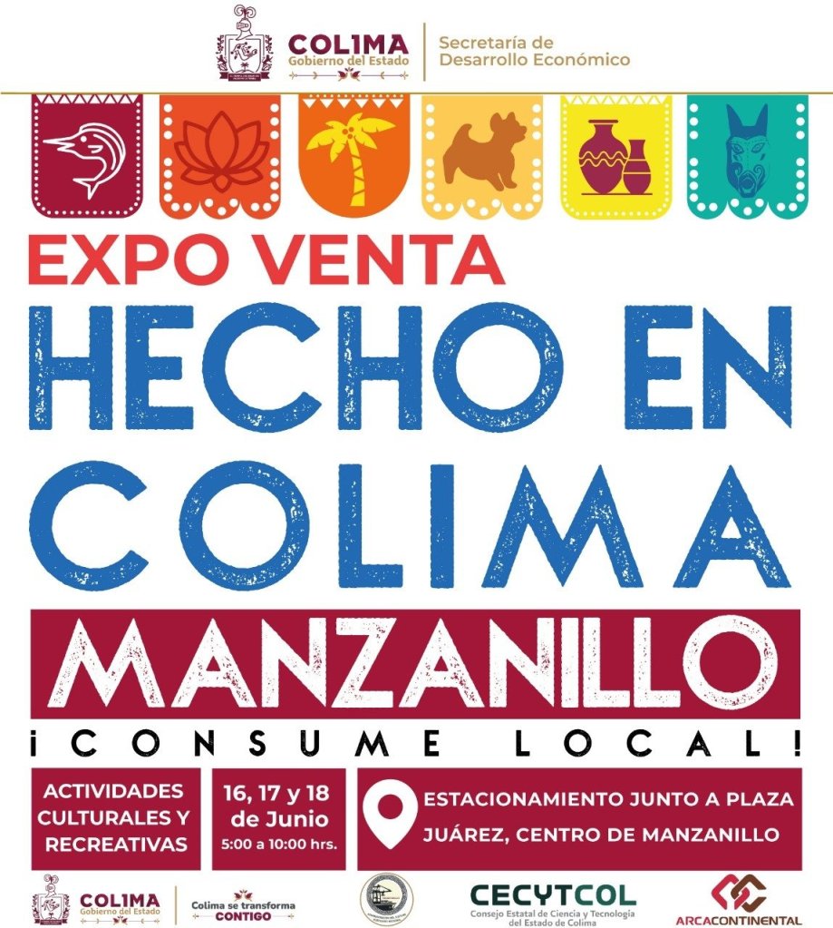 El Gobierno del Estado, a través de la Secretaría de Desarrollo Económico que encabeza Rosa María Bayardo Cabrera, llevará a cabo la primera exposición de productos de esta entidad, denominada “Expo Venta Hecho en Colima”, con el objetivo de incentivar la compra de una amplia gama de artículos que permitan reactivar la economía, actividad que se realizará durante el jueves 16, viernes 17 y sábado 18 de junio en el estacionamiento junto a la Plaza Juárez, en el centro histórico de Manzanillo, de 17 a 22 horas.