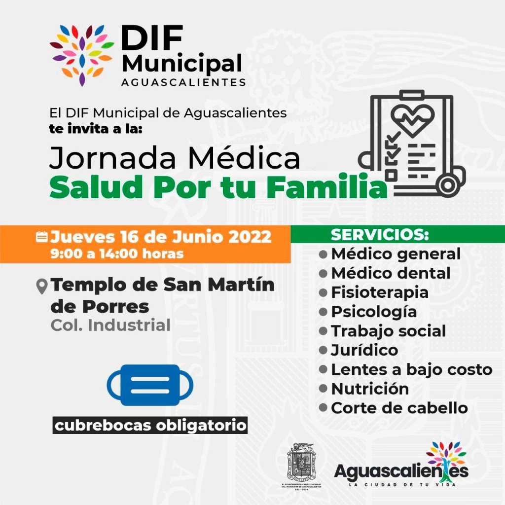 El Municipio de Aguascalientes continúa trabajando por el bienestar de la ciudadanía y como parte de las acciones correspondientes el departamento de Servicios Médicos del DIF realiza nuevas jornadas médicas “Salud Por tu Familia”, a favor de toda la población.