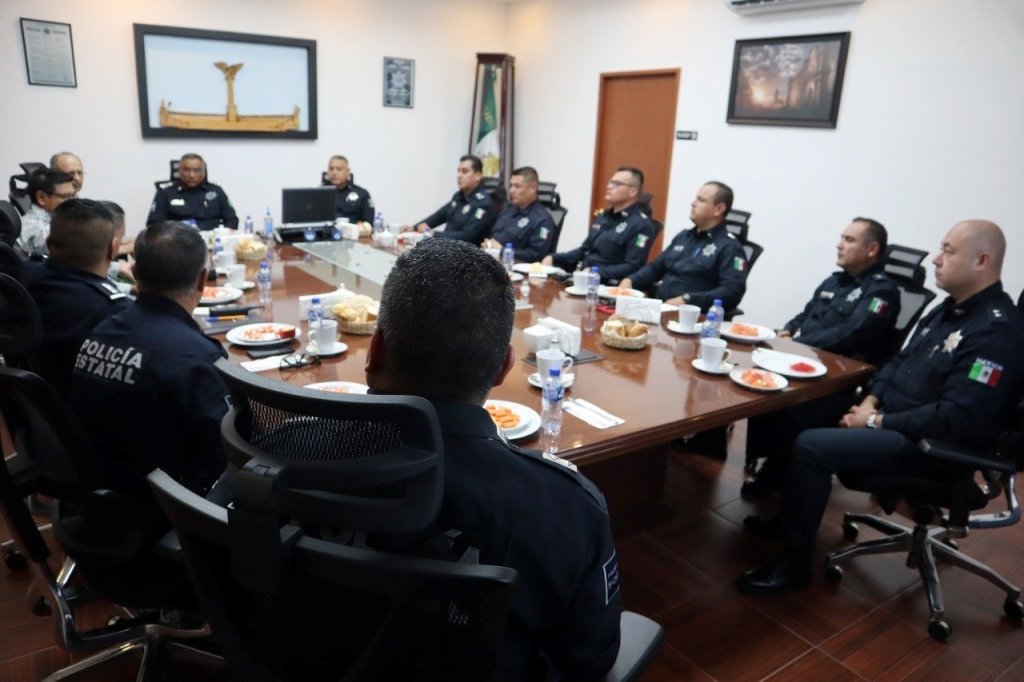 Durante una reunión que se llevó a cabo en las instalaciones de la corporación, el General de Brigada D.E.M. Rubén Barraza Rodríguez, comandante de la XIV Zona Militar, así como el coordinador estatal de la Guardia Nacional David Ramírez Piñón, reconocieron el trabajo que se ha realizado por los elementos de la Policía Estatal, en las fronteras de la entidad, para contener el avance de los grupos delictivos.