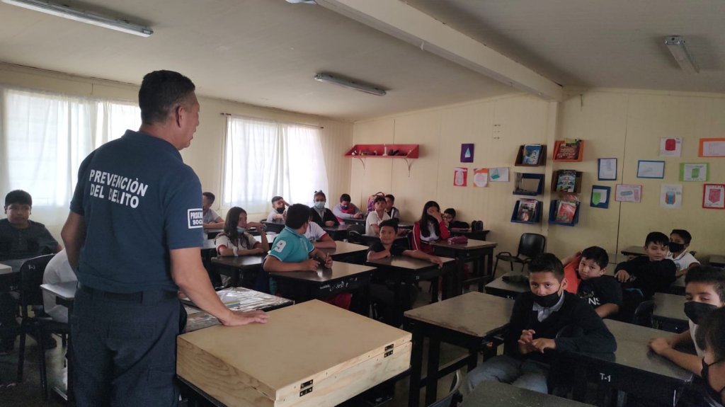 La Coordinación de Prevención del Delito de la Secretaría de Seguridad Pública y Vialidad del Municipio de Jesús María, continúa con la campaña de prevención de delitos con la cual se atendieron a alumnos de la Escuela Primaria Ford 102, 20 de noviembre, en la comunidad de Valladolid. A los estudiantes de 6° grado se les llevó la actividad de reforzamiento «JENGA” con el tema de «Faltas Administrativas y Delitos», la cual consiste en llevar a cabo dicho juego, pero las piezas cuentan con palabras clave que ellos tienen que explicar de acuerdo a la plática que recibieron. Para el grupo de 2° se les impartió en Taller de «Cuídate a ti Mismo» con el que los niños y niñas tuvieron la oportunidad de aprender técnicas de autodefensa para cuando son distraídos por una persona adulta. En estas actividades participaron 70 alumnos.
