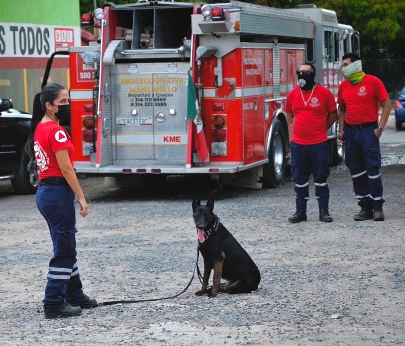 El Ayuntamiento de Manzanillo a través de la dirección de Protección Civil y Bomberos ha completado un 70 por ciento en el adiestramiento canino, con lo que dentro de unos meses más, podrá ser usado en sus métodos y acciones de ayuda a la gente.