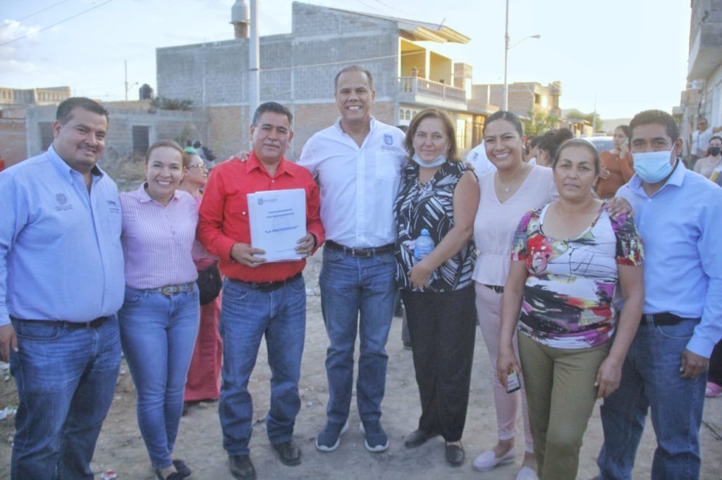 El presidente municipal de Jesús María, José Antonio Arámbula López, hizo entrega de los documentos oficiales correspondientes a la regularización del ahora fraccionamiento La Fraternidad.