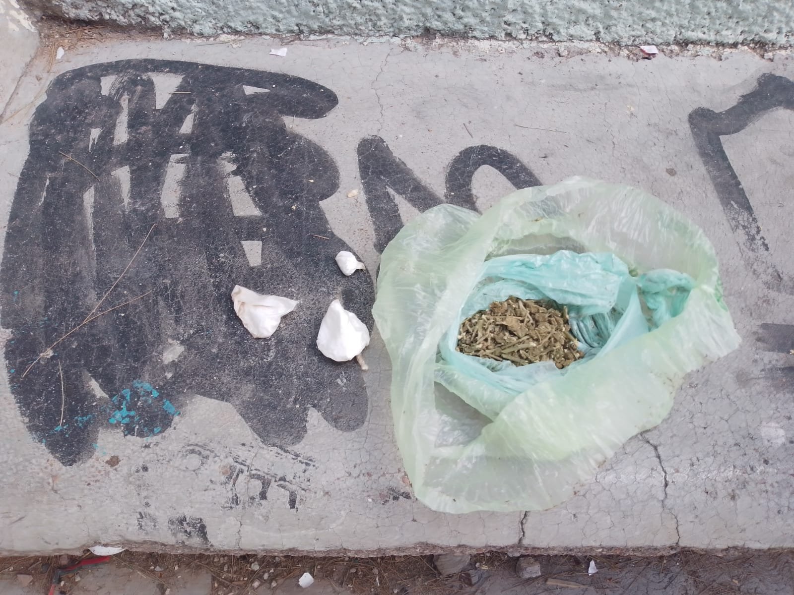Como resultado, se encontraron 3 envoltorios de plástico transparente que en su interior contienen una sustancia granulada así como otro envoltorio de las mismas características que contiene hierba verde y seca sin encontrar personas en el inmueble.