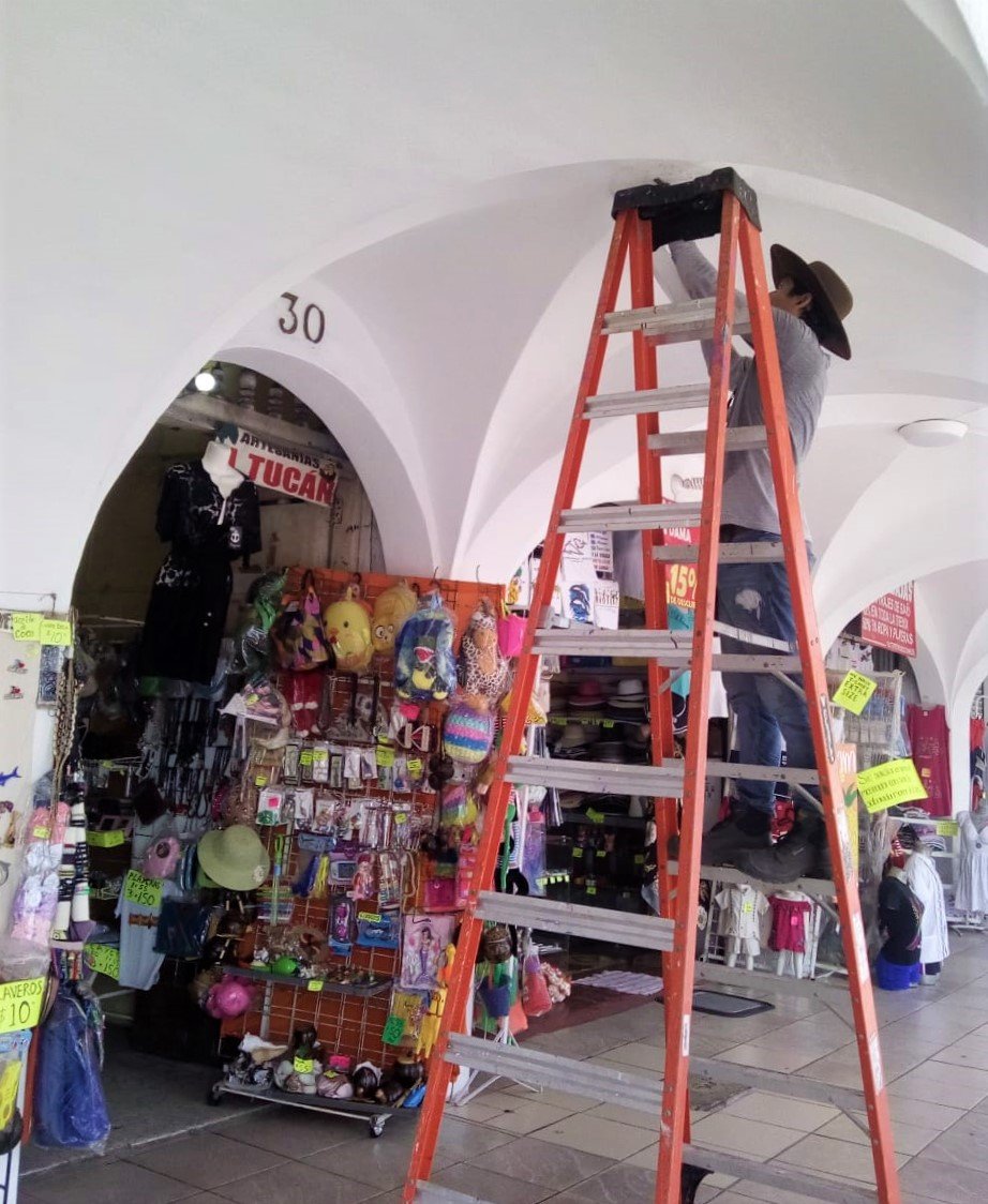 Como parte de las tareas permanentes de mejoramiento del Centro Histórico de Manzanillo, la brigada de embellecimiento Urbano del Ayuntamiento porteño, a cargo de la Dirección de Participación Ciudadana y Desarrollo Comunitario, lleva a cabo la sustitución de focos fundidos de los portales.