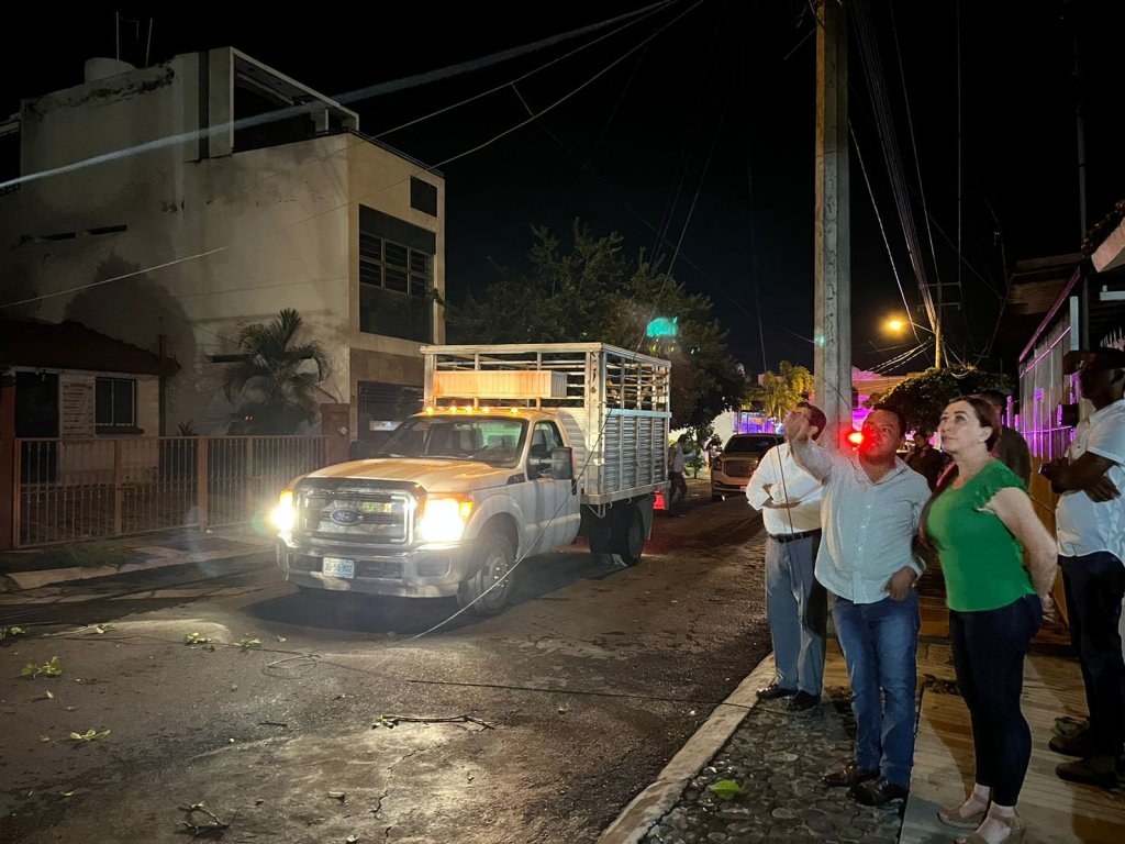 Acompañada por funcionarios municipales y trabajadores, la Presidenta Municipal Tey Gutiérrez Andrade realizó un recorrido por las calles de Villa de Álvarez, para revisar los daños ocasionados por las lluvias, instruyendo a Protección Civil Municipal atender a la brevedad los más de 20 reportes de servicios recibidos.