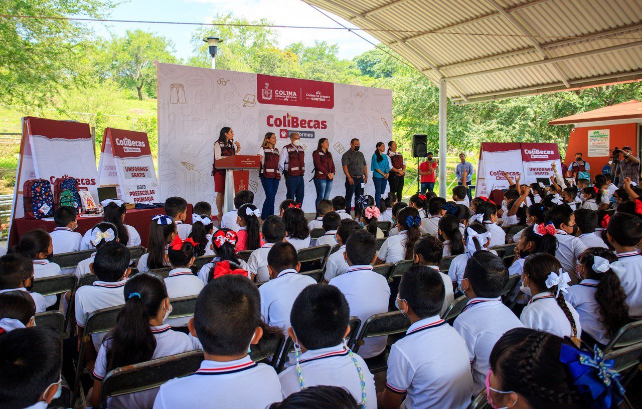 La gobernadora del estado de Colima, Indira Vizcaíno Silva, acudió este miércoles a las comunidades rurales de Cofradía de Suchitlán y Suchitlán, en el municipio de Comala, donde entregó uniformes escolares gratuitos a estudiantes del kinder Enriqueta Velázquez León, la Primaria Constitución, la Telesecundaria Alejandro Rangel y la primaria Gorgonio Ávalos, beneficiando a 826 alumnos y alumnas, mientras que a nivel estatal se apoyará a más de 118 mil niños, niñas y adolescentes.