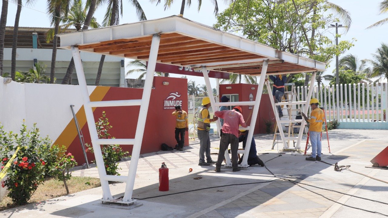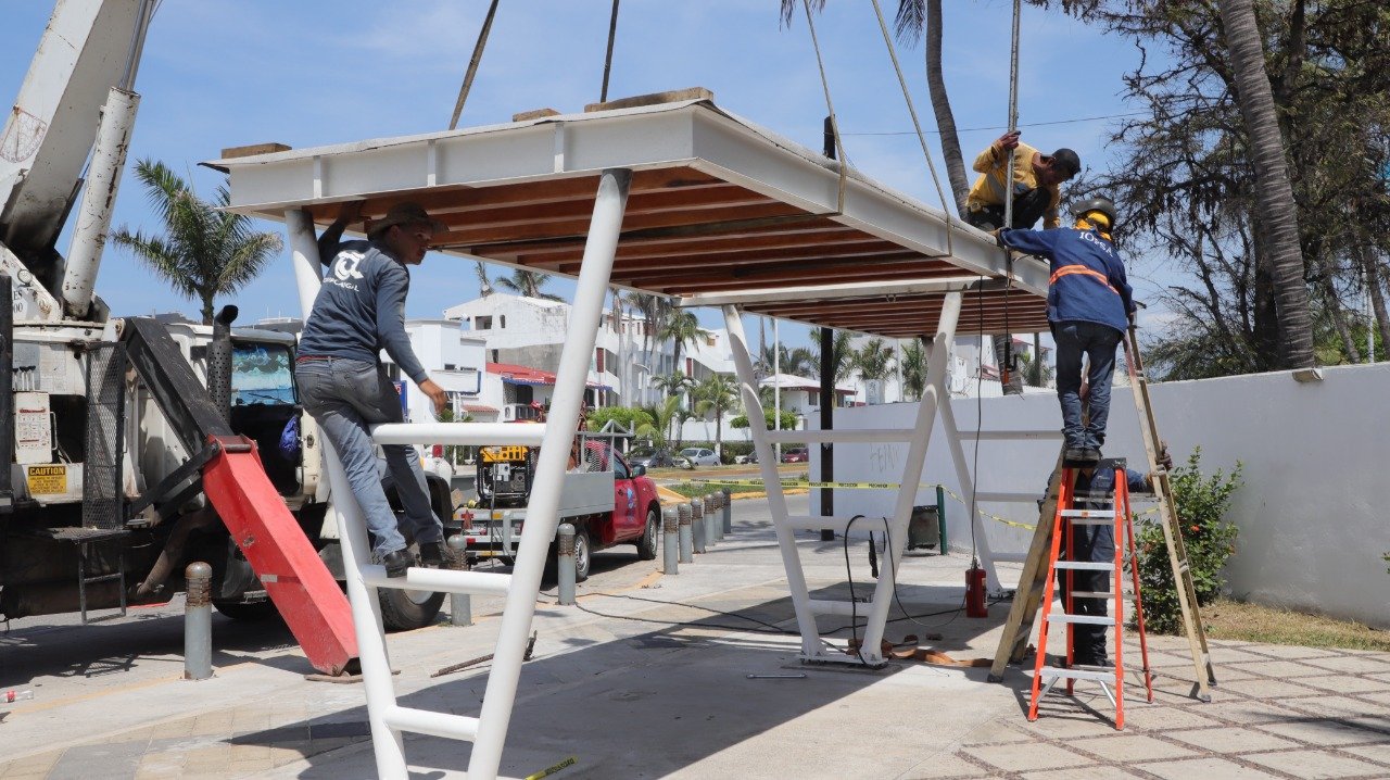 El Ayuntamiento de Manzanillo trabaja en la construcción de paraderos urbanos con materiales de calidad y mano de obra calificada.