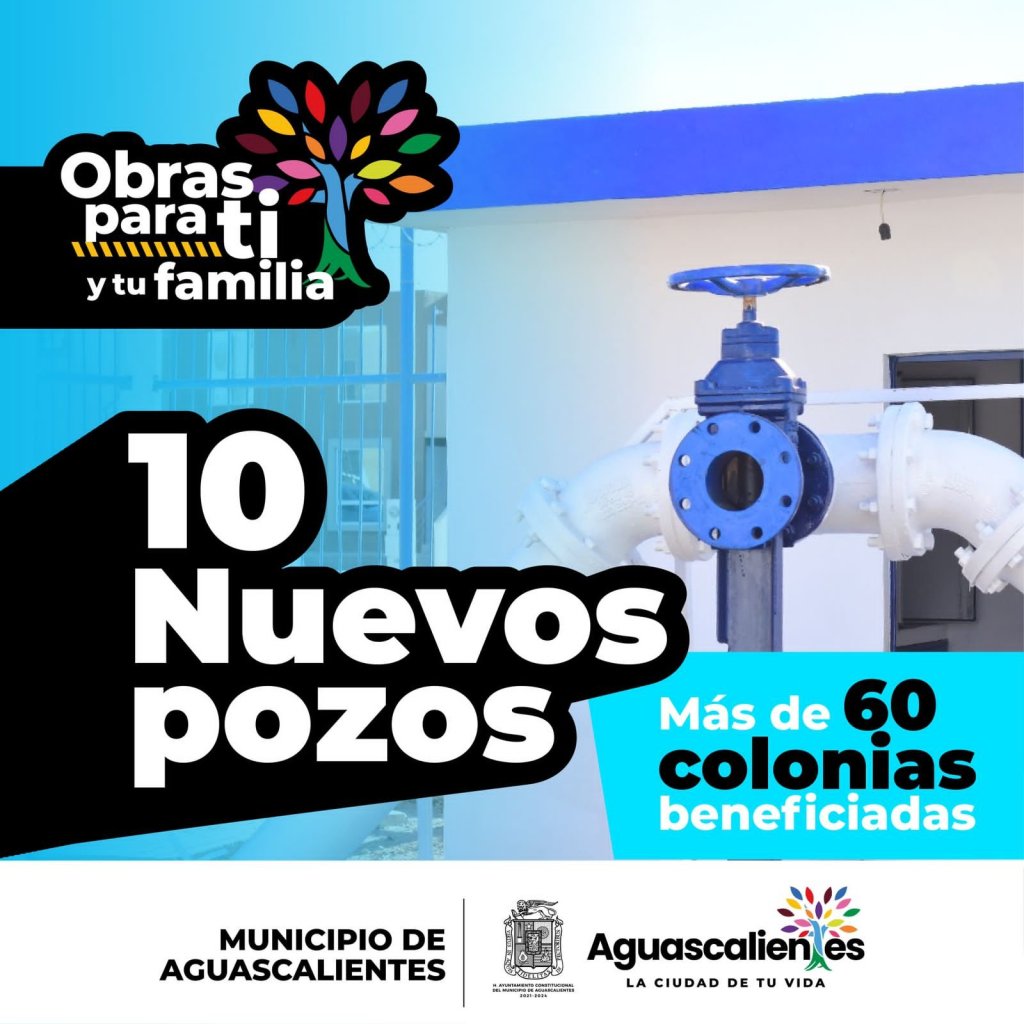 Como parte de las acciones que impulsa el presidente municipal, Leonardo Montañez, para eficientar el servicio de agua, destacan obras de construcción de nueva infraestructura, rehabilitación, limpieza y equipamiento en 10 pozos de agua potable, mismas que representan una inversión cercana a los 89 millones y medio de pesos, en beneficio de más de 166 mil usuarios de 62 colonias y comunidades de Aguascalientes.