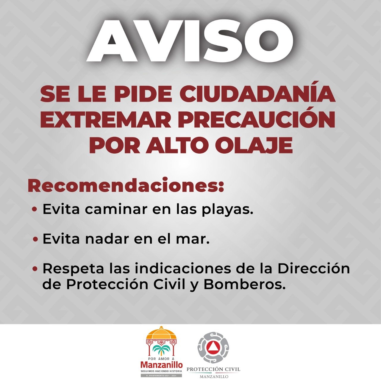 Para evitar riesgos, a través de la Dirección de Protección Civil y Bomberos de Manzanillo se alerta a la población sobre el fenómeno natural conocido como “mar de fondo” que afectará nuestras playas.