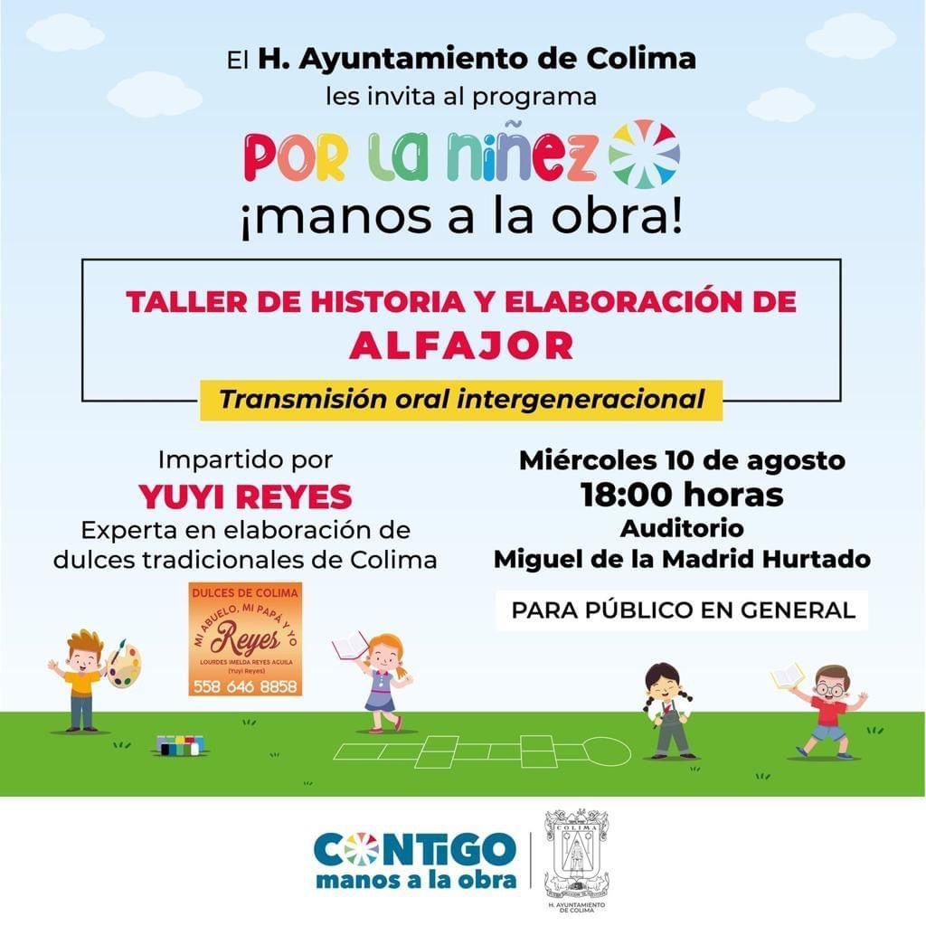 Te invitamos a que participes en el taller de historia y elaboración del alfajor de coco, uno de los dulces tradicionales de #Colima. Comenzamos este miércoles 10 de agosto a partir de las 18:00 horas, en el auditorio Miguel de la Madrid Hurtado. Serán 3 sesiones en total los días 10, 17 y 24 de agosto.
