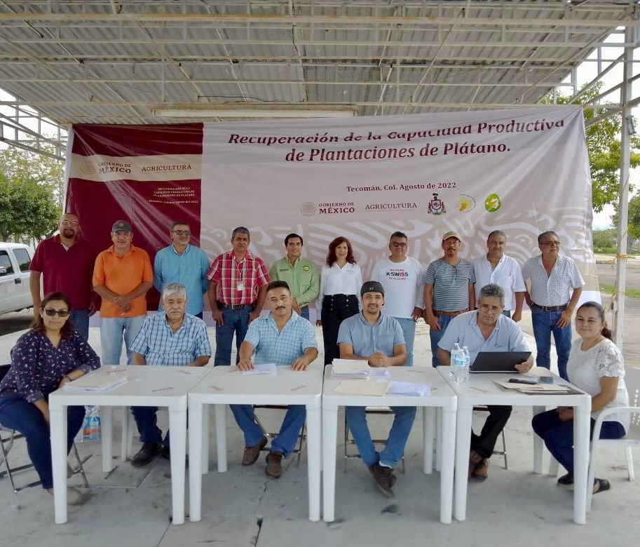 El apoyo del fertilizante entregado, fue gestionado por el Sistema Producto Plátano Nacional A.C, su distribución dio inicio el jueves 25 de agosto de 2022, en las instalaciones de la Feria de Tecomán, Colima, ante la presencia de la Titular de la Oficina de Representación en Colima, Ing. Ma. Esmeralda López Mendoza; el Ing. Jaime Enrique Sotelo García, Subsecretario de Desarrollo Rural de Gobierno del Estado; Ing. Iván Merchant Cruz, Gerente del Comité Nacional del Sistema Producto Plátano A.C., en Representación del Presidente del Comité, Lic. Adrián Prats Leal; C. José de Jesús Figueroa Cuevas, en representación del Presidente Municipal de Tecomán, Ing. Elías Antonio Lozano Ochoa; de igual manera se contó con la presencia del M.C. Miguel Ángel Manzanilla Ramírez, Director de Coordinación y Vinculación del INIFAP Colima y del C. Fidel Parra Mendoza, Presidente de la Asociación Local de Productores de Plátano de Tecomán.