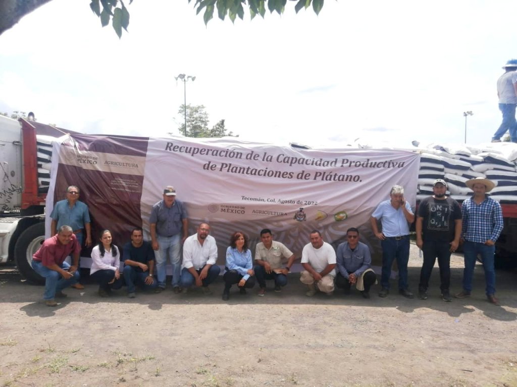 El Gobierno Federal entregó más de 224 toneladas de fertilizante a las y los 202 productores de plátano de Colima, beneficiados con el Proyecto Estratégico de “Recuperación de la Capacidad Productiva de las Plantaciones de Plátano”, que fueron afectadas por los fenómenos meteorológicos ocurridos en el 2021.