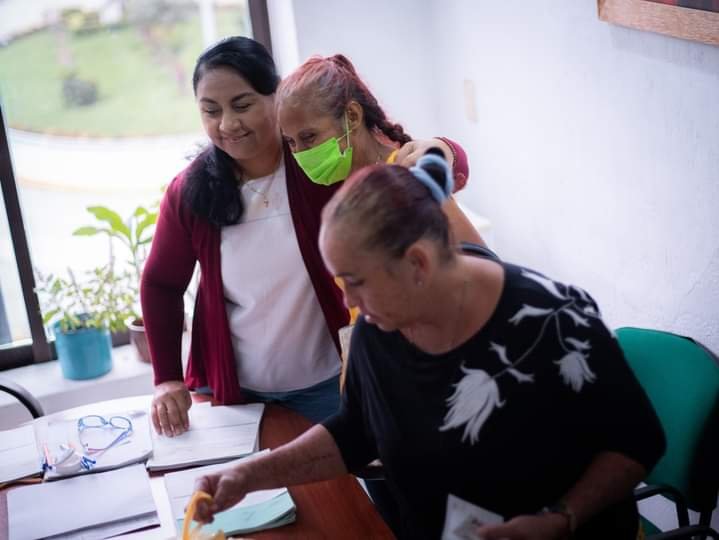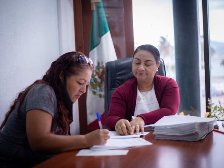 En sala de juntas, la alcaldesa recibió a la gente a quien ayudó al llenado de la documentación requerida por la dirección de Desarrollo Social, pues de esta dependencia del Ayuntamiento de Manzanillo es el presupuesto para el Programa de Apoyo a Grupos Vulnerables.