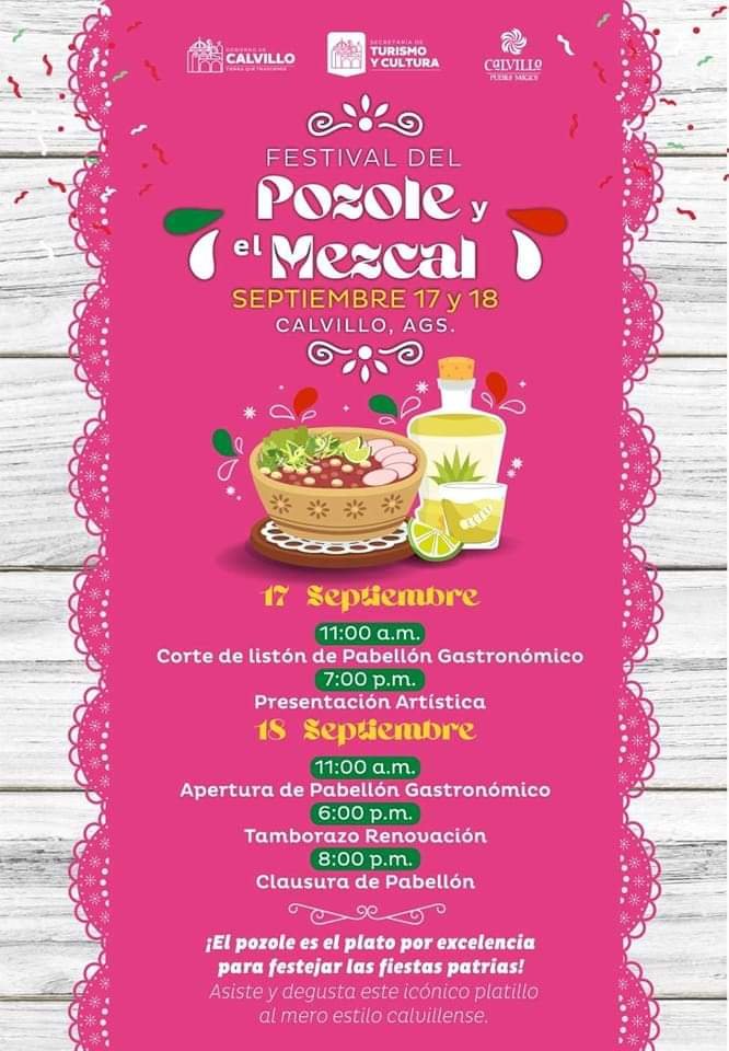 El Gobierno de Calvillo a través de la Secretaría de Turismo y Cultura te invita a disfrutar del sabor tradicional de nuestro Pueblo Mágico en este mes patrio, el próximo sábado 17 y domingo 18 disfruta del Festival del Pozole y el Mezcal en Calvillo, en el que los visitantes podrán degustar este platillo típico y la tradicional bebida mexicana.