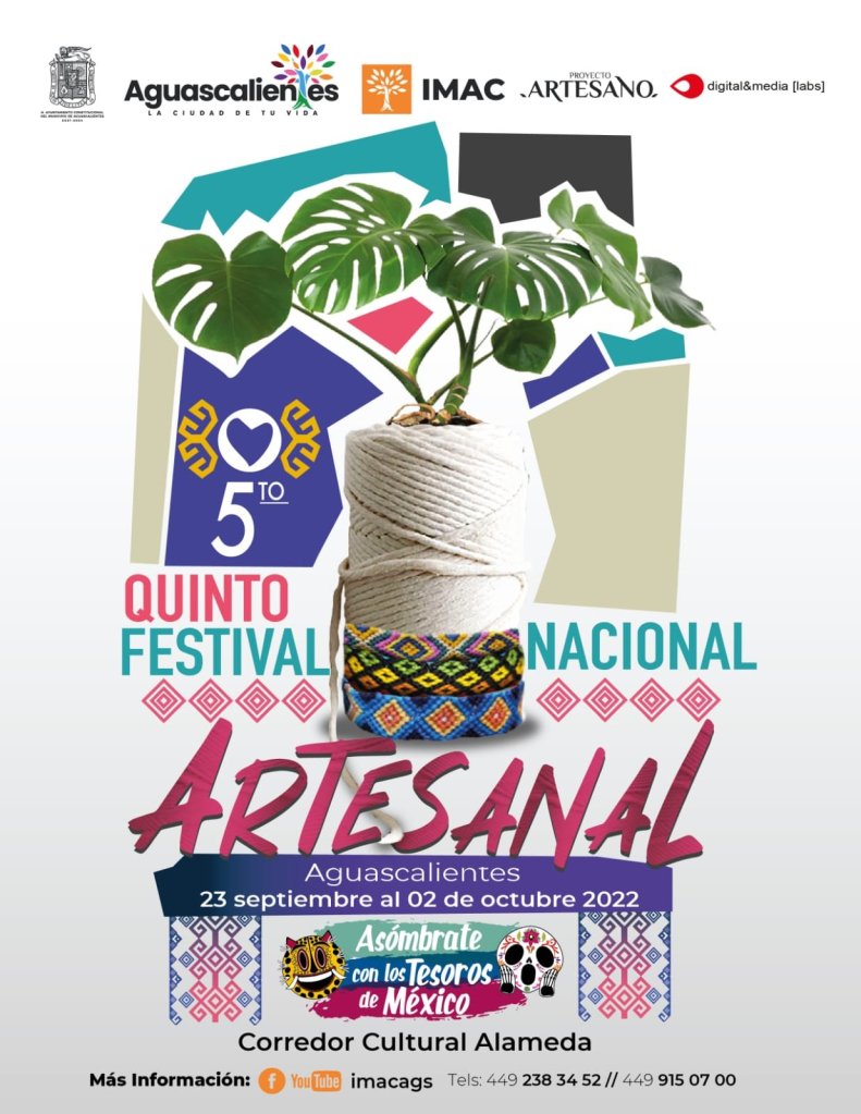 El Instituto Municipal Aguascalentense para la Cultura (IMAC) invita a la ciudadanía al 5to Festival Nacional Artesanal Aguascalientes 2022, que se realizará del 23 de septiembre al 2 de octubre en el Corredor Cultural Alameda.