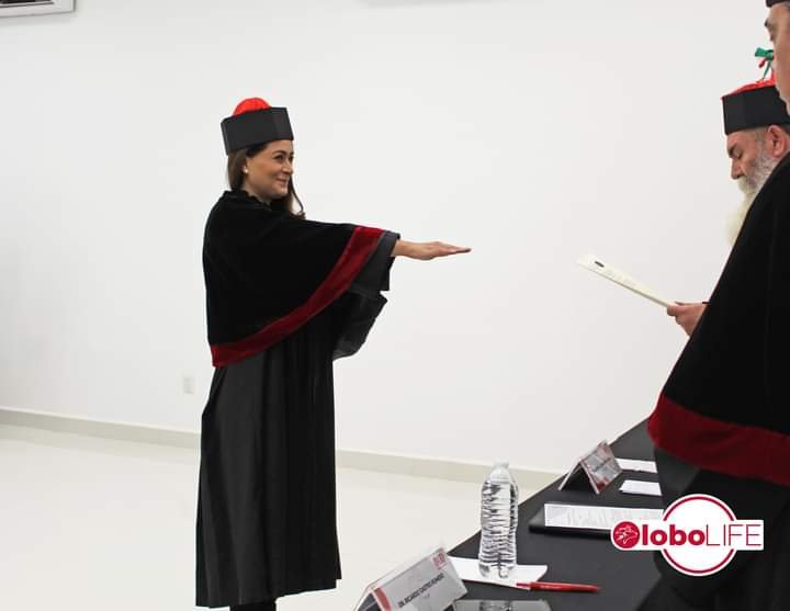 Al finalizar el examen el Rector impuso la toga Universitaria a la Doctora Tere Jiménez quien agradeció a la Universidad Autónoma de Durango haberle brindado siempre excelentes docentes.