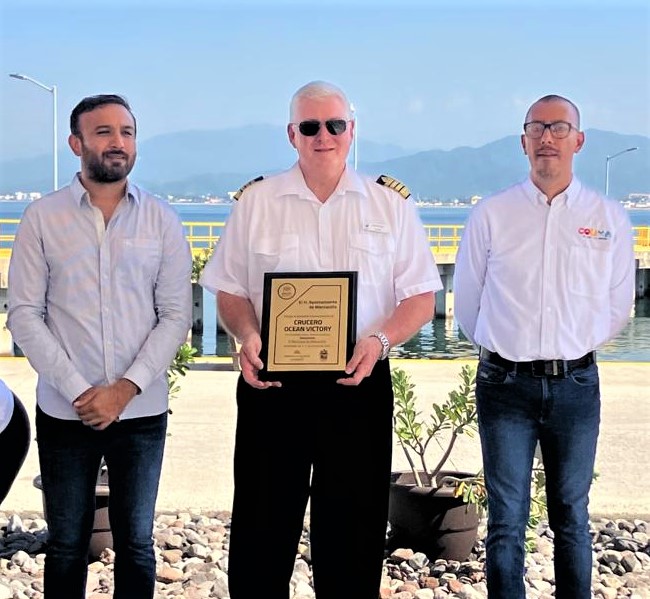 Este martes 11 de octubre de 2022, el Ayuntamiento de Manzanillo y demás autoridades, dieron la bienvenida al crucero Ocean Victory, con quien se hizo un intercambio de placas a través de un evento protocolario. Este navío de la compañía American Queen Voyages, llegó al puerto de Manzanillo con 147 personas a bordo entre pasajeros y tripulación, procedente de Puerto San Diego; su trayectoria pasó por Puerto Vallarta y su próximo destino será, Huatulco. En esta ceremonia protocolaria, el jefe de Logística y Estadística Turística de la dirección municipal en el ramo, Ricardo Jaime González Canisales, fue quien hizo entrega de la placa correspondiente. Es de mencionar que para esta temporada de cruceros se espera el arribo de 11 cruceros a Manzanillo, y de acuerdo con la agenda turística, este miércoles se le dará la bienvenida al navío Nieuw Ámsterdam, que ha zarpado de Vancouver, Canadá como puerto de origen y llegará a nuestro municipio procedente de Puerto Vallarta. De acuerdo con los datos de capacidad este navío puede transportar a 2 mil 527 pasajeros y a 929 tripulantes, con lo que se espera una importante derrama en la economía local a través de estas visitas.