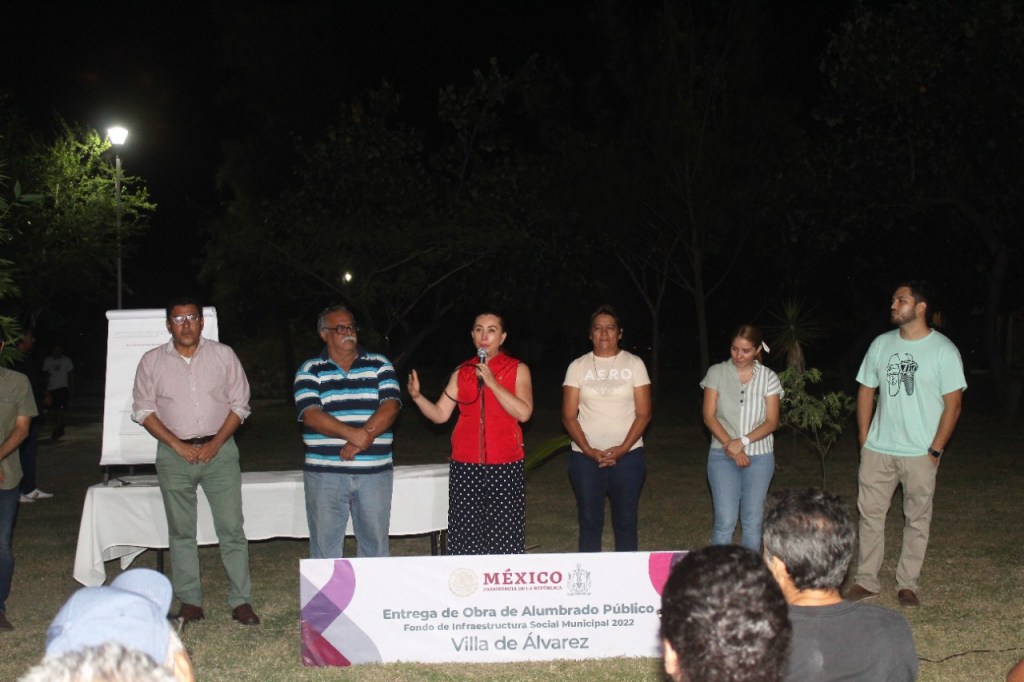 En beneficio de las mil 869 personas que habitan la colonia Las Lagunas, la Presidenta Municipal de Villa de Álvarez Tey Gutiérrez Andrade, entregó la obra de rehabilitación de la red de alumbrado público de ese fraccionamiento ubicado al norte de la Ciudad.