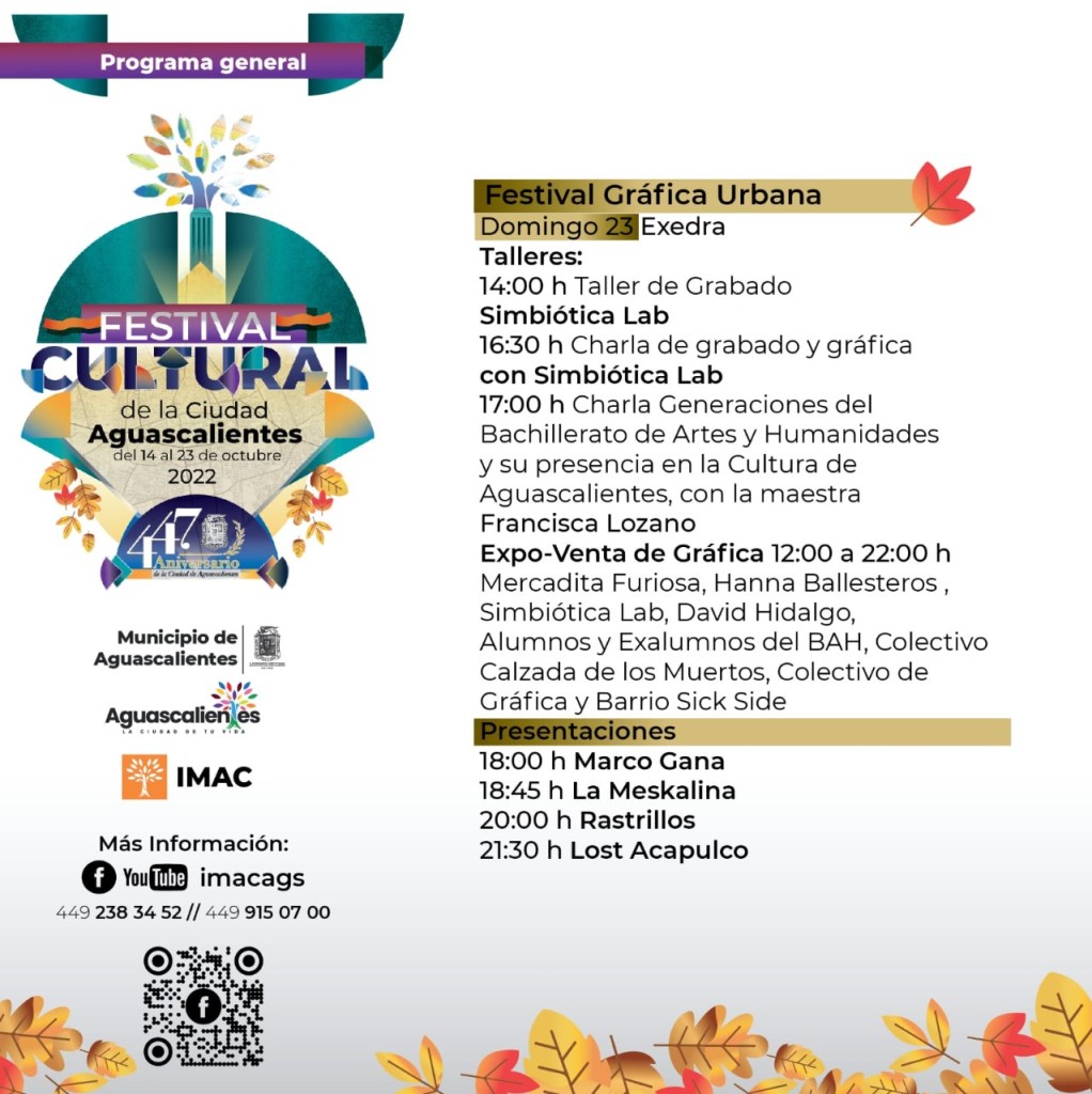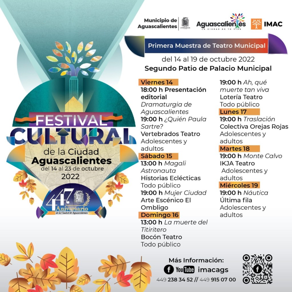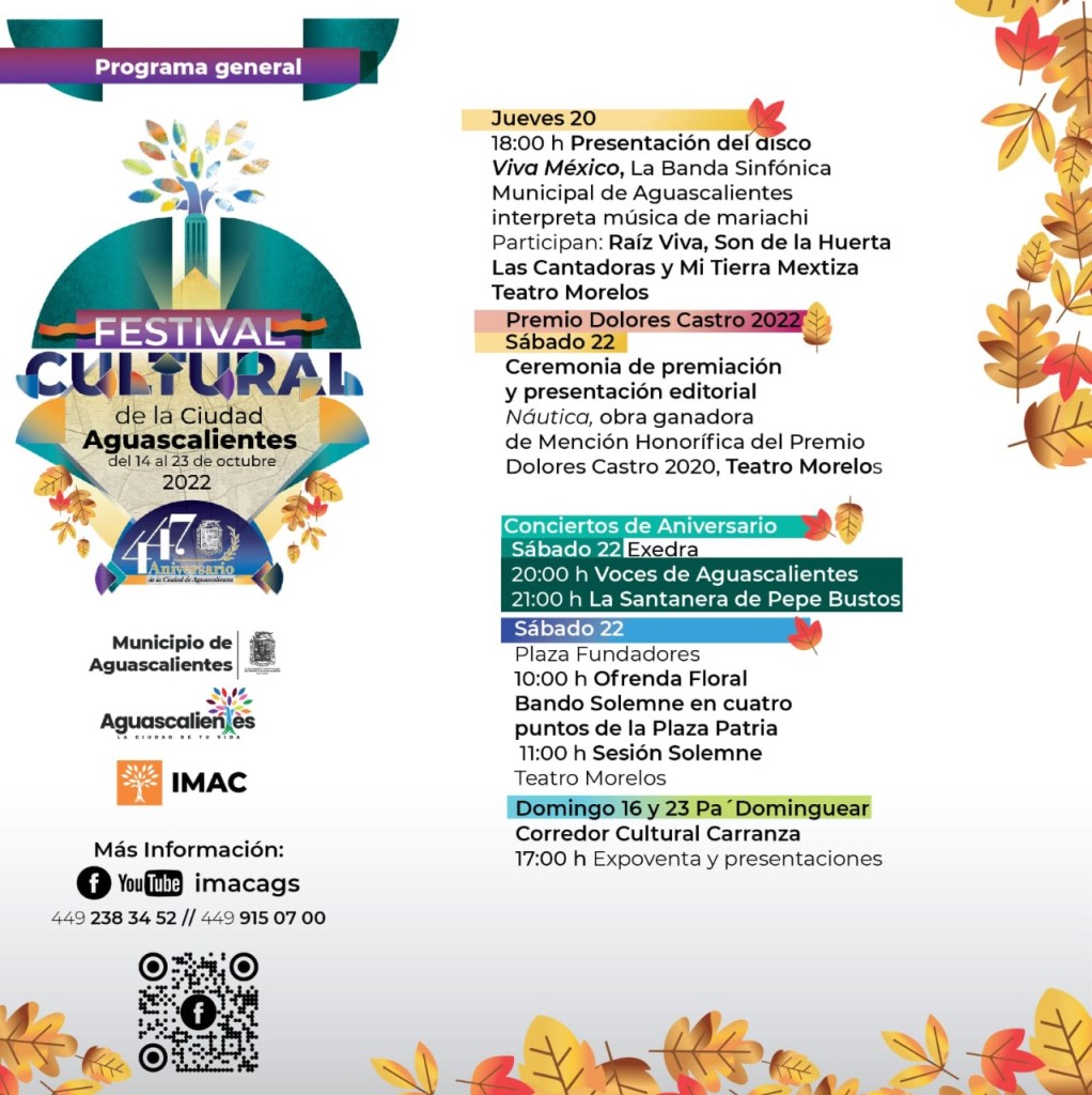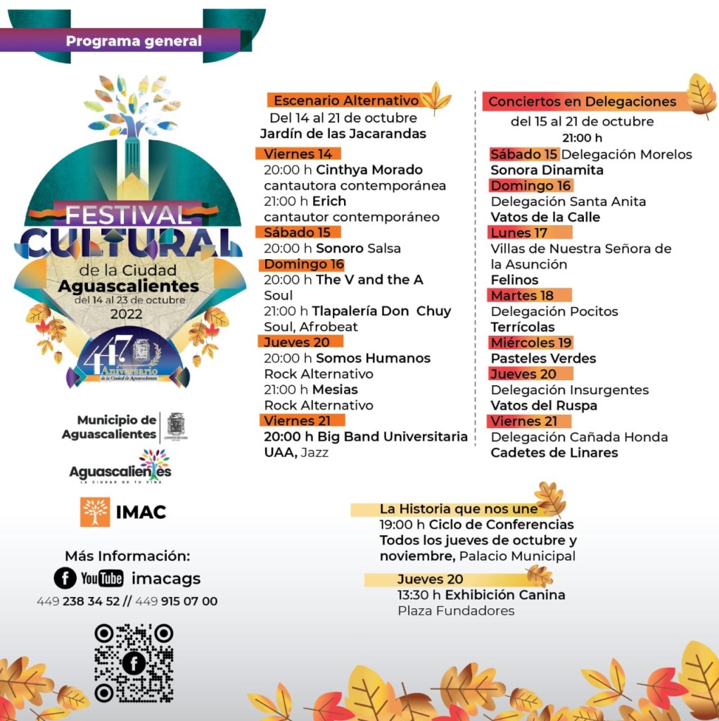 El programa completo para el Festival Cultural de la Ciudad se puede consultar en el portal web http://www.ags.gob.mx, en redes sociales del IMAC y del Municipio de Aguascalientes.