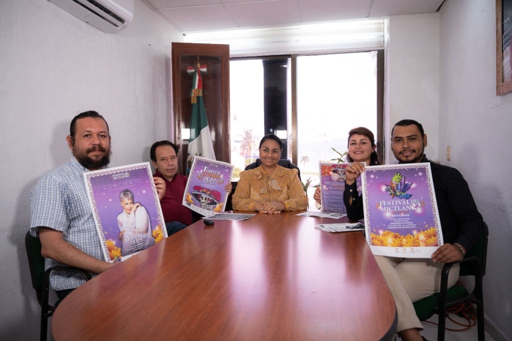 Una gran tradición mexicana llega muy pronto, del 28 de octubre al 06 de noviembre el Ayuntamiento de Manzanillo realizará el Festival del Mictlán 2022 para la celebración del Día de Muertos, así lo anunció la presidenta Griselda Martínez quien reveló que el miércoles 02 de noviembre, en la explanada del Pez Vela, ofrecerá un concierto la cantante Eugenia León; evento gratuito para todo el público. Con la presencia del director del Instituto Municipal de la Cultura Lenin Cázares, del director de Participación y Desarrollo Comunitario Luis Valdivia, la directora del Instituto Municipal de las Mujeres, Verónica Solís y el director de Educación y Personas Jóvenes, Carlos Luna, la alcaldesa mencionó que en este Festival se podrán disfrutar de muchos y variados eventos familiares, pues su objetivo es la generación de paz social y fomentar comunidad. El director de Participación y Desarrollo Comunitario, Luis Valdivia mencionó que en diversas colonias se desarrollan los altares comunitarios, en donde vecinas y vecinos comparten recuerdos o fotografías de sus seres queridos que han fallecido y entre todos construyen la respectiva ofrenda, “a las ganadoras les ayudamos a organizar sus posadas comunitarias”. Destacó que en estas festividades que el Ayuntamiento de Manzanillo organiza de manera gratuita, es muy importante el involucramiento de la población, “que la sociedad reconozca el valor cultural que tiene el día de muertos, lo cual es reconocido por la Unesco”. Por su parte el director del Instituto Municipal de la Cultura Lenin Cázares, informó que, en el marco del Festival del Mictlán el 02 de noviembre, la cantante Eugenia León iniciará su presentación a las 8:30 de la noche en la explanada del Pez Vela, “es un espectáculo de corte familiar y cultural, tiene que ver con nuestra identidad”.