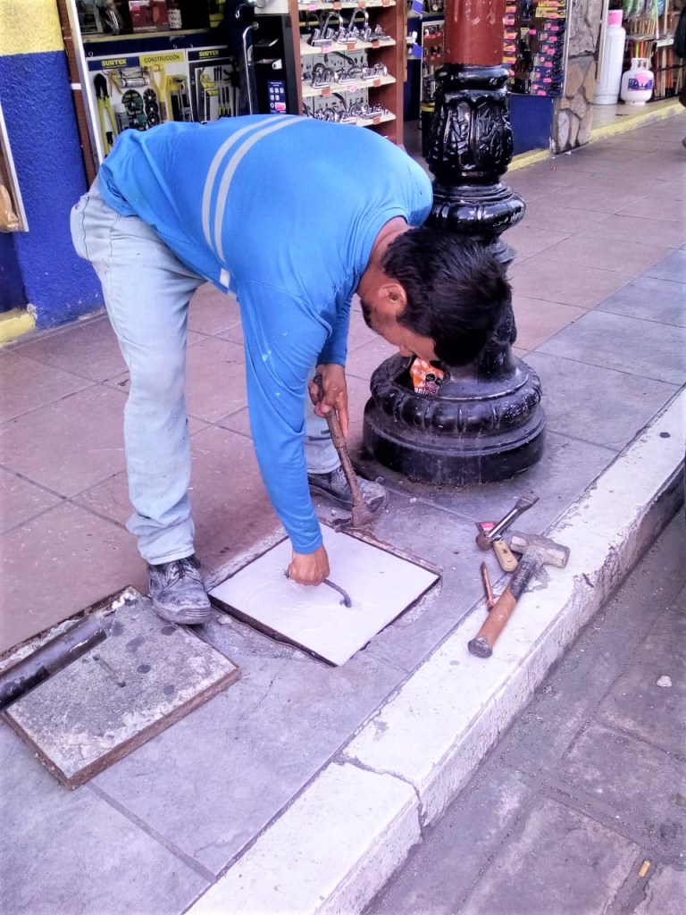Para seguir con el programa de un Manzanillo limpio y organizado, el Ayuntamiento, a través de la dirección de Participación y Desarrollo Comunitario, la Brigada de embellecimiento urbano hace la reparación de las tapas de registro que están dañadas sobre el trayecto de la Avenida México.