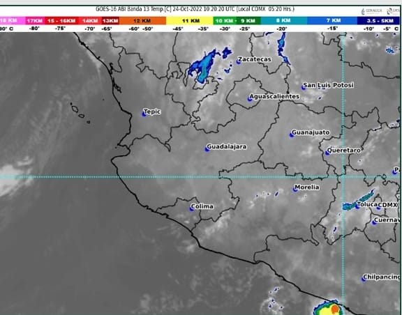 La Unidad Estatal de Protección Civil (UEPC) del Gobierno del Estado de Colima, comparte el reporte que da a conocer este lunes 24 de octubre el Servicio Meteorológico Nacional (SMN), que pronostica para hoy lluvias aisladas de 0.1 a 5 milímetros en zonas de: Colima, Jalisco, Michoacán, Coahuila, Sinaloa, San Luis Potosí, Durango, Morelos, Ciudad de México, Hidalgo, Tlaxcala, Veracruz, Campeche y Yucatán.
