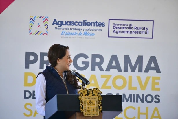 La gobernadora de Aguascalientes puso en marcha en El Tule, Asientos, el programa “Desazolve de bordos y caminos saca cosechas” para atender una de las más sentidas peticiones de los productores agrarios.