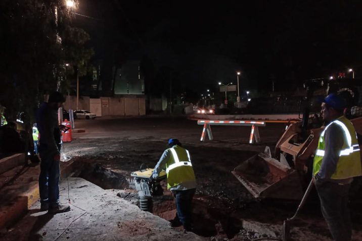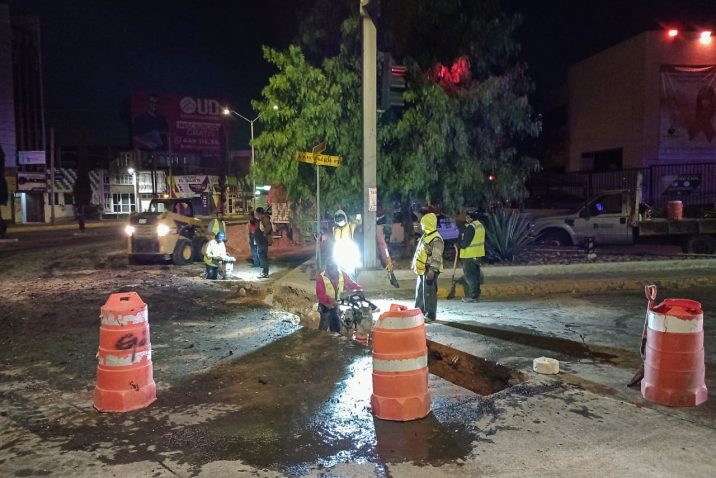 Por su parte, Rafael Berumen Esparza, encargado de despacho de CCAPAMA explicó que los trabajos se realizan principalmente de noche para afectar lo menos posible el tráfico vehicular; añadió que tras realizar excavaciones para despejar el flujo y liberar el tramo dañado de manera parcial, se tomó la determinación de llevar a cabo la rehabilitación integral, sustituyendo la red de alcantarillado sanitario existente, por tubería de 10 pulgadas de diámetro, cumpliendo con los estándares de calidad requeridos para brindar resultados óptimos y ofrecer un servicio de mayor calidad.