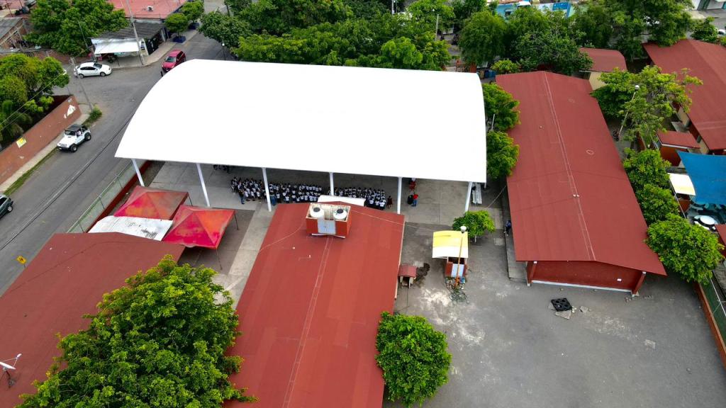 Con el objetivo de una educación digna y de calidad, el alcalde municipal, Elías Lozano, hizo entrega de la construcción de techumbre en la cancha de usos múltiples de la Escuela Primaria Rey Coliman.