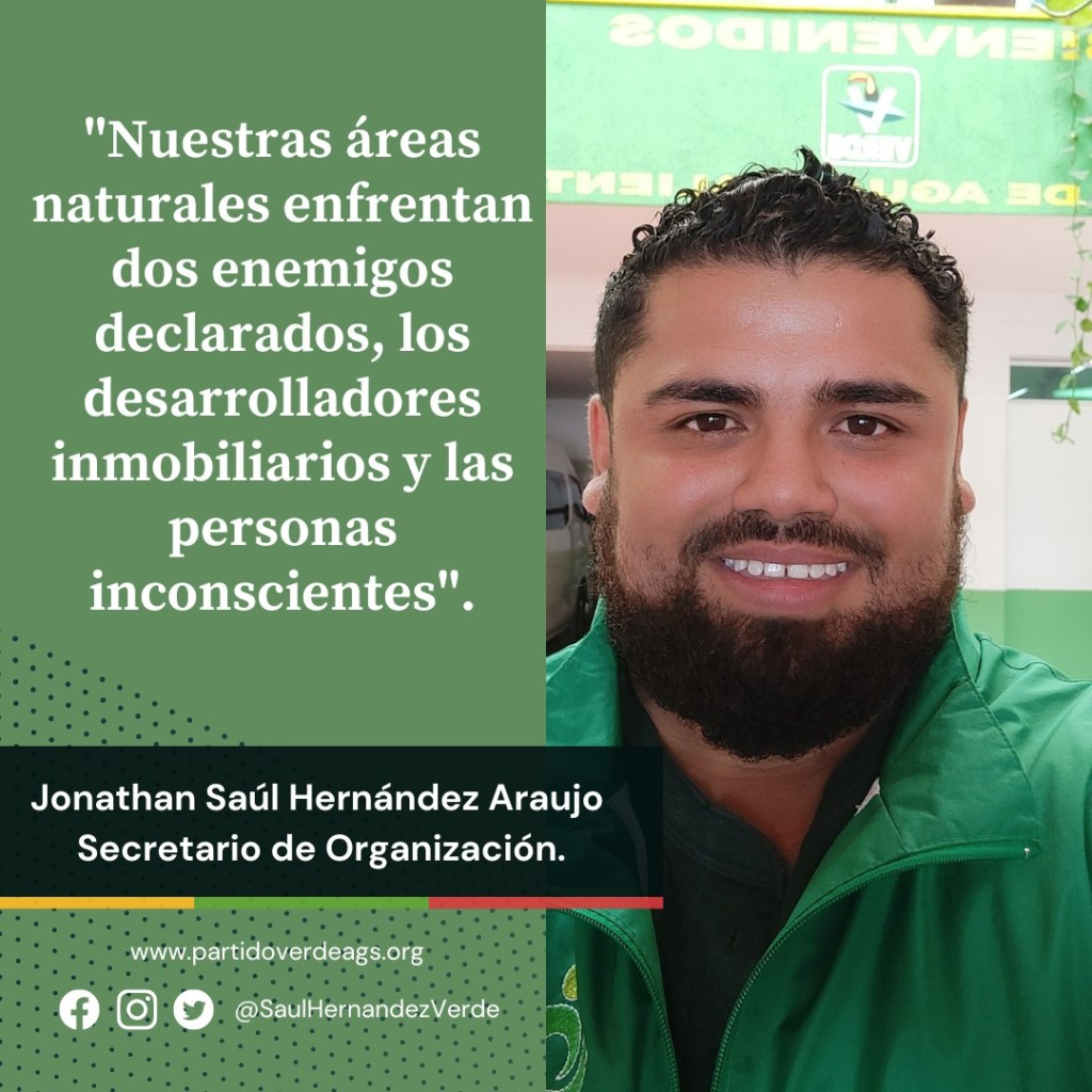 La tala ilegal es un factor de la deforestación, la destrucción del hábitat y la extinción de especies, y favorece el calentamiento global1, la cual es pude ser castiga con 2 a 15 años de prisión, sin embargo es una práctica común en especial en esta época del año, algo que es inadmisible ya que afecta de manera directa a nuestras áreas naturales, por lo que el Secretario de Organización del PVEM en Aguascalientes, Jonathan Saúl Hernández, hace el llamado a las autoridades de los tres órganos de gobierno a poner atención a estos sucesos, “La tala ilegal amenaza a nuestras áreas naturales y poco se hace para evitarlo, por lo que hay que pedirle a todas nuestras autoridades competentes nos ayuden a evitar este acto tan atroz para nuestra hábitat”, agregó, “lamentablemente nuestras áreas naturales enfrentan dos enemigos declarados, los desarrolladores inmobiliarios y las personas inconscientes, y esto lo vemos, en la Sierra Fría, en La Poma y en Bosque de Cobos, es cuando el buen gobierno debe de actuar como una aliado del medo ambiente y no como otro enemigo más, ya que como podemos ver en algunos casos es falta de educación ambiental, pero en otros casos es la ambición”.