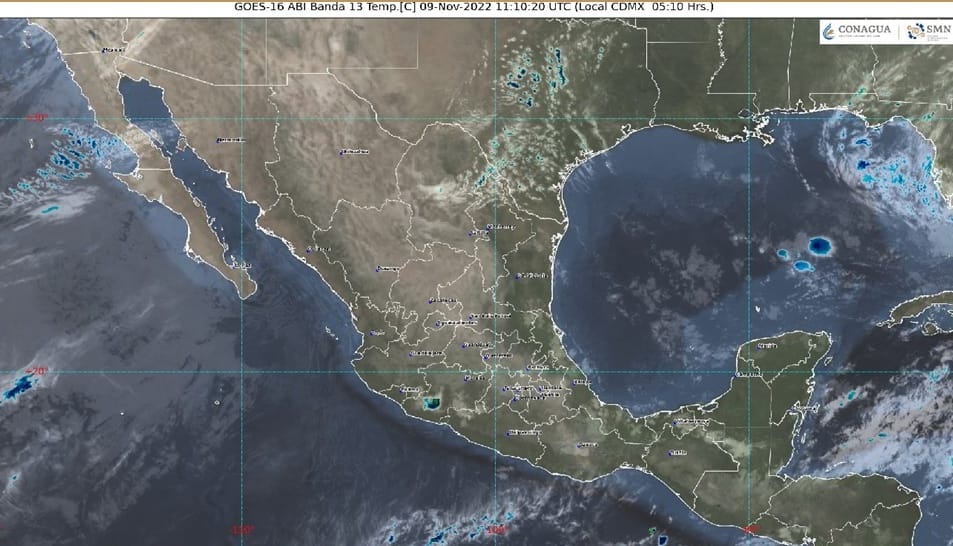 Respecto al pronóstico de temperaturas máximas para hoy, se registrarán de 35 a 40°C en: Sinaloa, Nayarit, Jalisco, Michoacán, Guerrero y Oaxaca, así como de 30 a 35°C en los estados de: Colima, Durango, Coahuila, Nuevo León, Tamaulipas, Yucatán y Quintana Roo. Las mínimas serán de -10 a -5 °C con heladas: sierras de Baja California, Chihuahua y Durango.