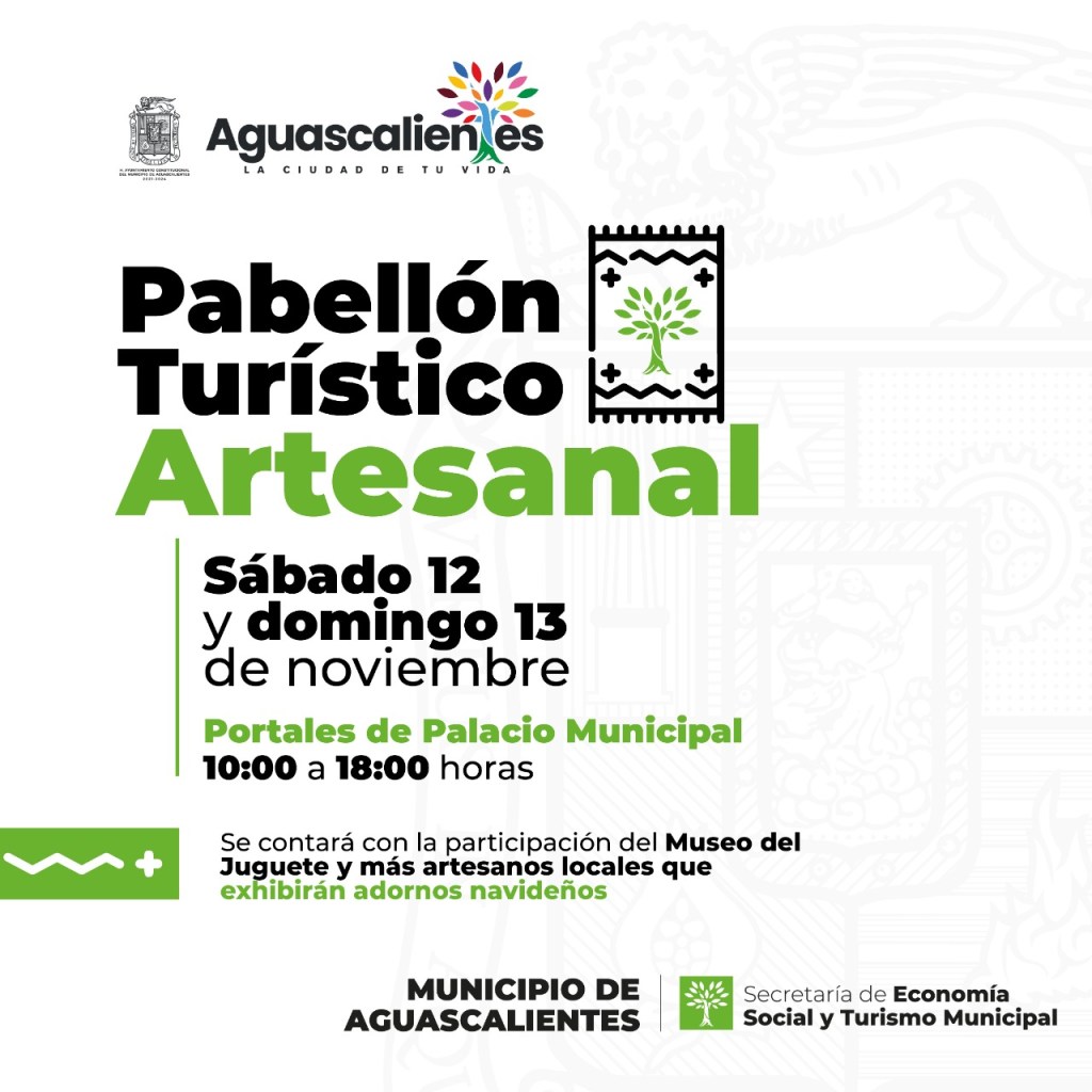 La Secretaría de Economía Social y Turismo Municipal (Setum), instalará el Pabellón Turístico Artesanal, los días próximos días 12 y 13 de noviembre en los portales de Palacio Municipal, para impulsar los productos hechos y comercializados por negocios locales.
