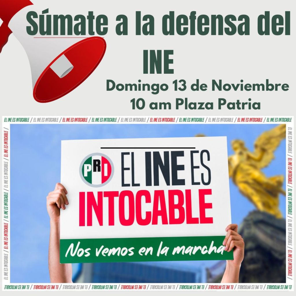 El priismo de Aguascalientes participará en la marcha en defensa del INE que se llevará a cabo este domingo 13 de noviembre en todo el país, para refrendar apoyo absoluto y confianza al órgano electoral, que representa el patrimonio democrático que ha dado certeza en todas las decisiones de los ciudadanos, electoralmente hablando.