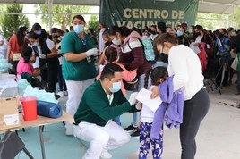 El doctor Víctor Molina, responsable de Vacunología en el estado, mencionó que durante esta temporada es importante reforzar el sistema inmunológico de los menores de edad, por lo que hizo un llamado a las madres, padres o tutores para que lleven a sus hijas e hijos al centro de salud más cercano a recibir la vacuna; recalcó que su aplicación no requiere algún tipo de derechohabiencia.