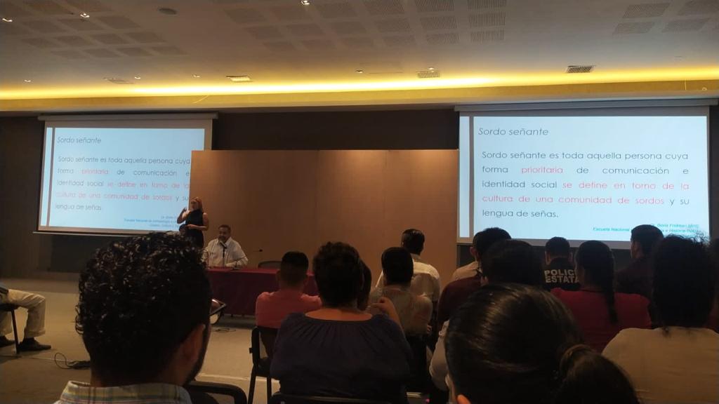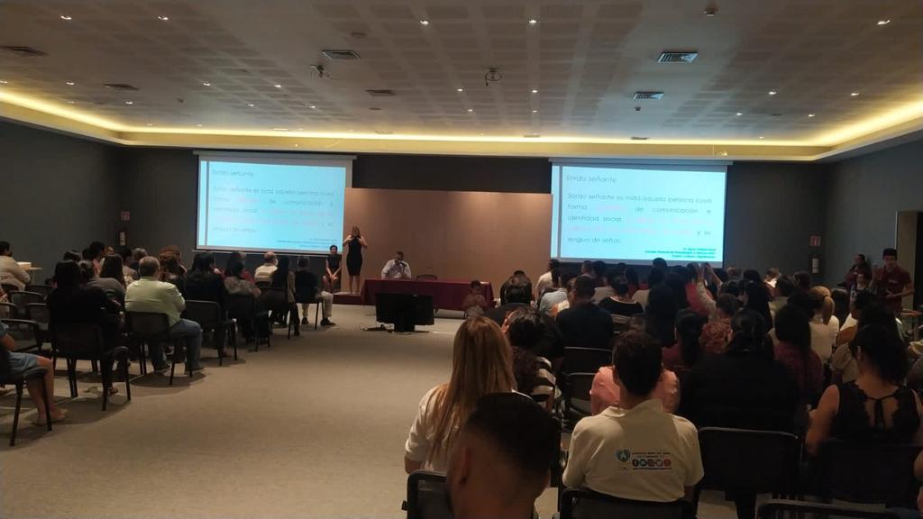 En el marco del Día Internacional de las Personas con Discapacidad, personal de la Secretaría de Salud del Gobierno del Estado, que encabeza la titular Martha Janeth Espinosa Mejía, participó en la conferencia denominada “La Lengua de Señas Mexicana como Herramienta para Garantizar el Derecho a la Inclusión de las Personas Sordas”, que fue impartida por Eduardo Daniel Maya Ortega, líder nacional de intérpretes y traductores de Lengua de Señas y representante internacional de América ante la Asociación Mundial de Intérpretes y Traductores, misma que se llevó a cabo en el Centro de Convenciones del Complejo Administrativo, dirigida a funcionarias, funcionarios, servidoras y servidores públicos del Gobierno del Estado de Colima.