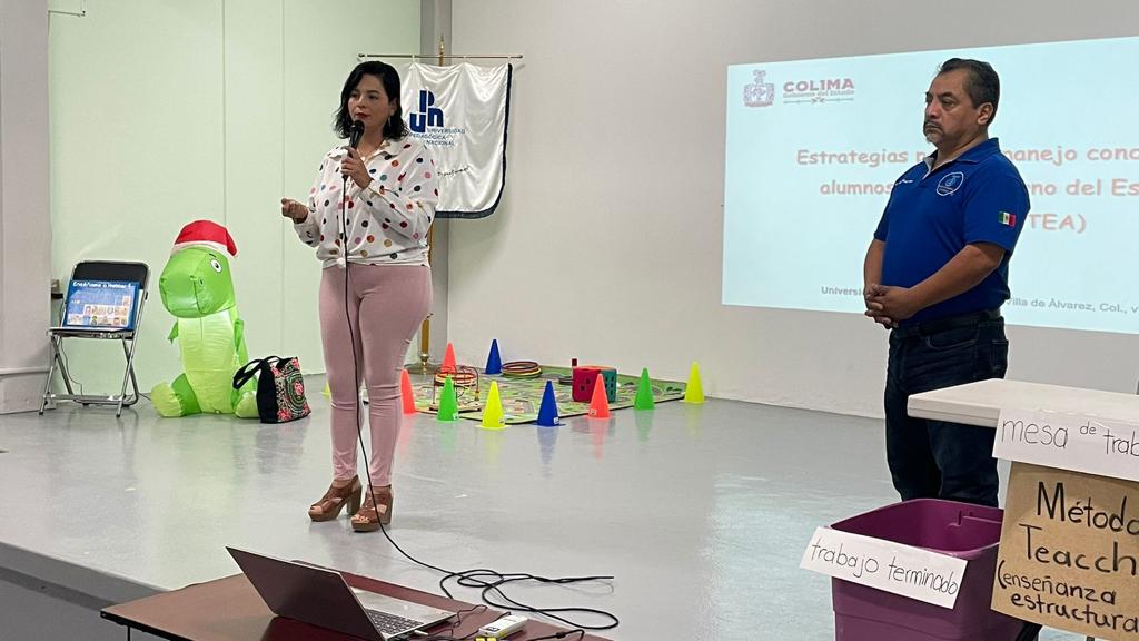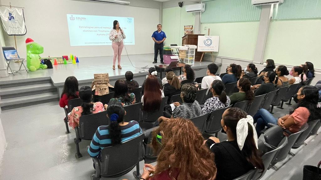 La Secretaría de Educación y Cultura del Gobierno del Estado de Colima llevó a cabo este viernes una charla con madres y padres de familia de hijos con Trastornos del Espectro Autista (TEA), con el objetivo de proveer información y herramientas, tanto a las y los progenitores, como a personas cuidadoras, para un mejor trabajo directo con hijas e hijos, en la enseñanza de habilidades de autocuidado y comunicación, así como el manejo de conductas problemáticas.