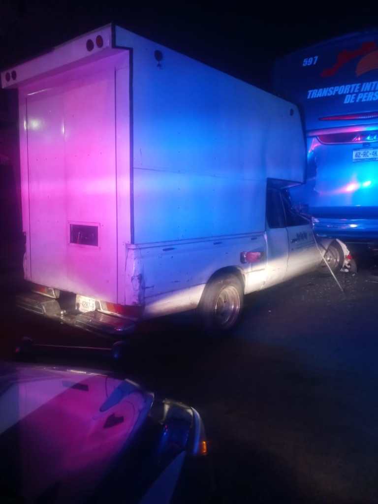 Policías Viales de Aguascalientes atendieron el reporte de un choque entre un camión de 3.5 toneladas y un autobús de pasajeros, que tuvo lugar en calles del fraccionamiento Trojes del Cóbano.