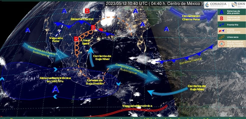 El organismo de la Comisión Nacional de Agua (Conagua), fuente oficial del Gobierno de México, informó que las temperaturas máximas para hoy serían de 40 a 45°C en San Luis Potosí, Michoacán, Guerrero, Oaxaca, Chiapas, Veracruz, Tabasco, Campeche y Yucatán, mientras que de 35 a 40 °C en: Colima, Jalisco, Baja California, Sonora, Sinaloa, Nayarit, Coahuila, Nuevo León, Tamaulipas, Hidalgo, Puebla (suroeste), Morelos y Quintana Roo.