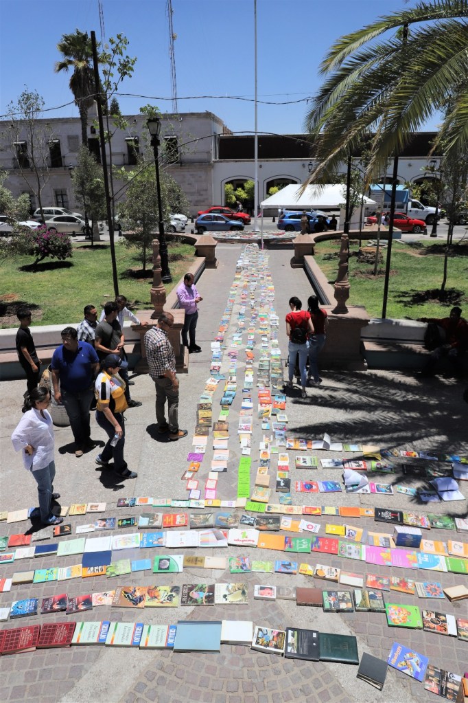 El presidente municipal Antonio Arámbula y su esposa Liliana Coronado de Arámbula, de la mano con el Club Rotario Ejecutivo de Aguascalientes dirigido por Edgar Bussón, así como del SISAAE de Jesús María, llevaron a cabo este sábado el Kilómetro del Libro, con el cual se busca impulsar la creación de nuevas bibliotecas en escuelas de educación básica de este municipio.
