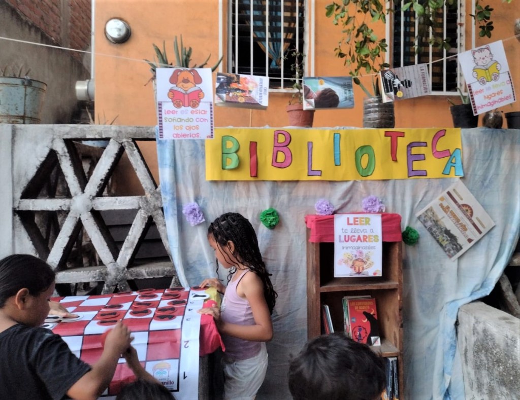 En esta ocasión, se comienza con la habilitación de una biblioteca comunitaria más en El Colomo, donde muchos menores se involucraron para pintar, lo que serán los estantes, en donde se colocarán los libros y juegos que estarán a disposición de la comunidad.