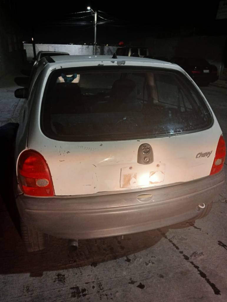 Oficiales de la policía preventiva del Destacamento Morelos que se encontraban realizando su recorrido minutos antes de las 3 de la mañana de este miércoles atendieron el reporte que se recibió en el C4 Municipal de Aguascalientes, en el que se informaba que había que acababa de ser robado un vehículo Chevrolet, Chevy, modelo 1998, en color blanco, sin placas de circulación, por lo anterior al realizar el recorrido de rastreo al circular sobre la calle Munguía detectaron el vehículo reportado como robado, por lo que le indicaron a su conductor que detuviera su marcha pero contrario a obedecer aceleró la unidad particular intentando darse.