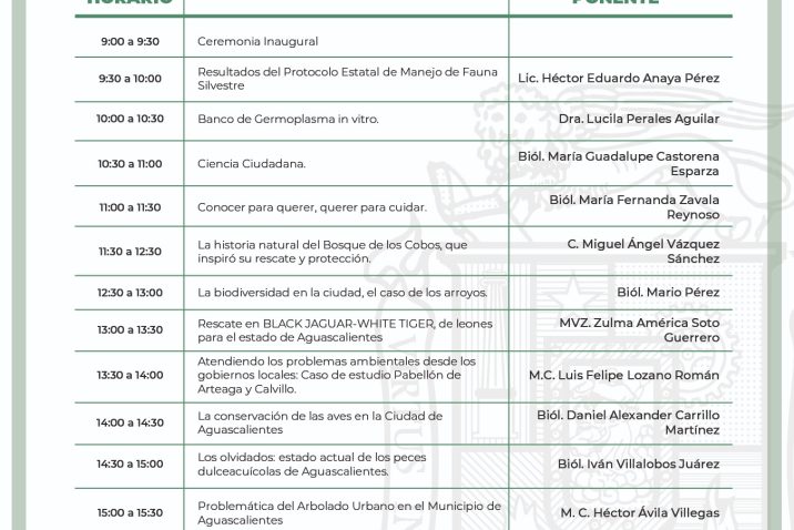 En el marco de la celebración del Día Internacional de la Diversidad Biológica el próximo 22 de mayo, se llevará a cabo el primer seminario dirigido a académicos, investigadores, entes públicos, medios de comunicación y sociedad en general, donde se contará con la participación de diferentes ponentes, especialistas en temas del manejo de fauna silvestre, rescate y protección de áreas naturales, reforestación, cuerpos de agua como ríos y arroyos, aves, mamíferos, entre otros, lo que permitirá tener una visión integral de la situación actual en materia de biodiversidad en Aguascalientes.
