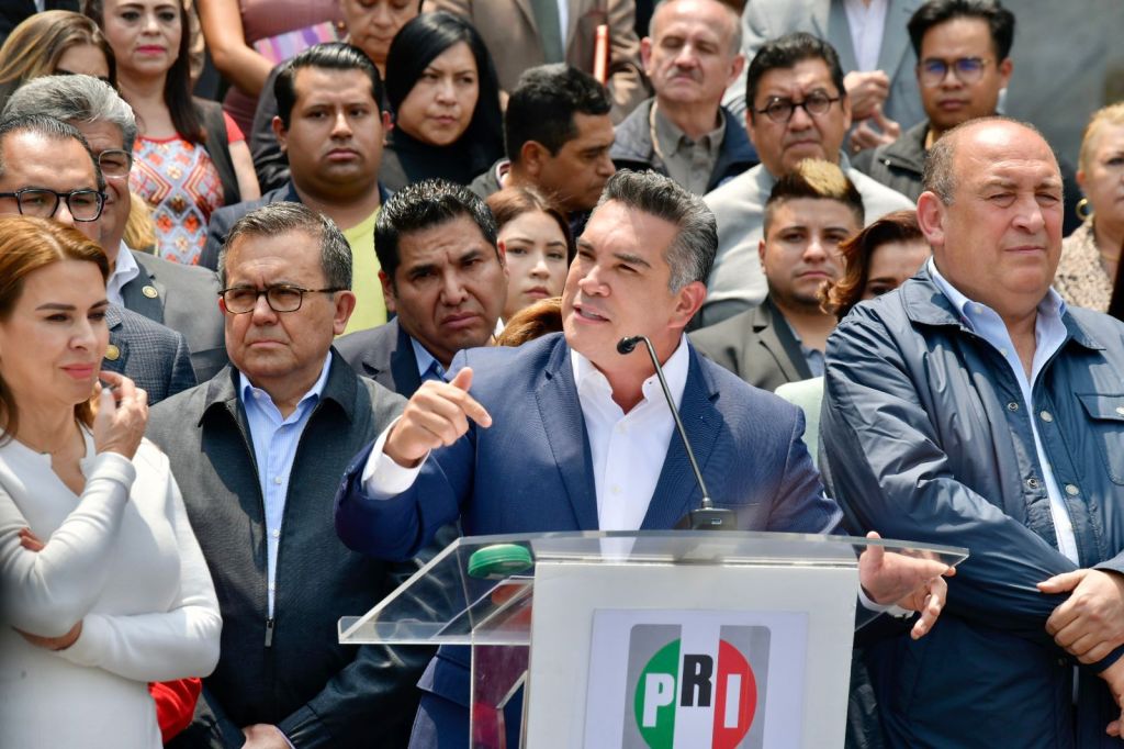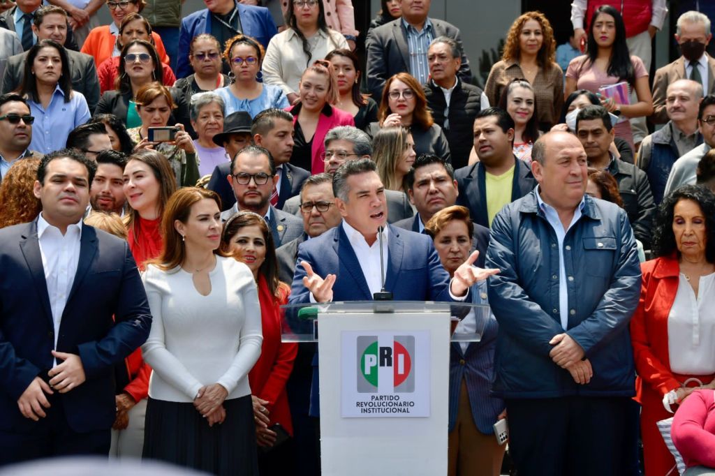 El Presidente Alejandro Moreno encabezó una conferencia de prensa en el Palacio Legislativo de San Lázaro, en compañía de la Secretaria General del CEN, Carolina Viggiano, del Coordinador del Grupo Parlamentario del PRI en la Cámara de Diputados, Rubén Moreira e integrantes de la bancada partidista.
