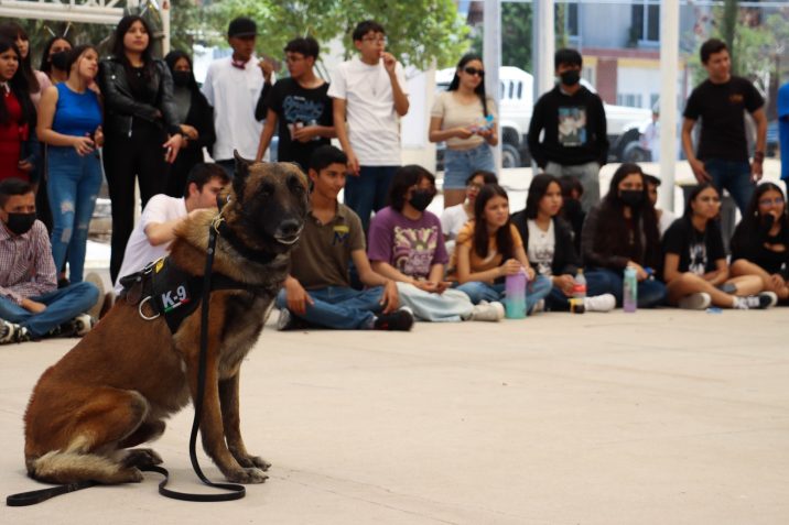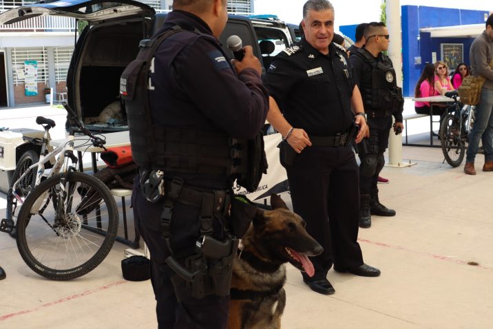 La mañana de este martes, el titular de la Secretaría de Seguridad Pública (SSPM), Antonio Martínez Romo, junto con elementos policiales, llevaron a cabo una presentación del Grupo K9 que sorprendió a cerca de 300 espectadores, entre alumnos y maestros de la Secundaria General número 41, ubicada en el fraccionamiento Villas de las Palmas.
