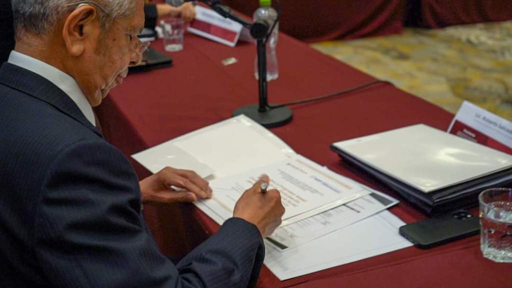 Firmamos el Programa Anual de Trabajo de Participación Ciudadana y Contraloría Social, 2023 entre la Secretaría de la Función Pública y el Gobierno del Estado de Aguascalientes a través de la Contraloría del Estado de Aguascalientes, que encabeza Juan Pablo Diosdado.