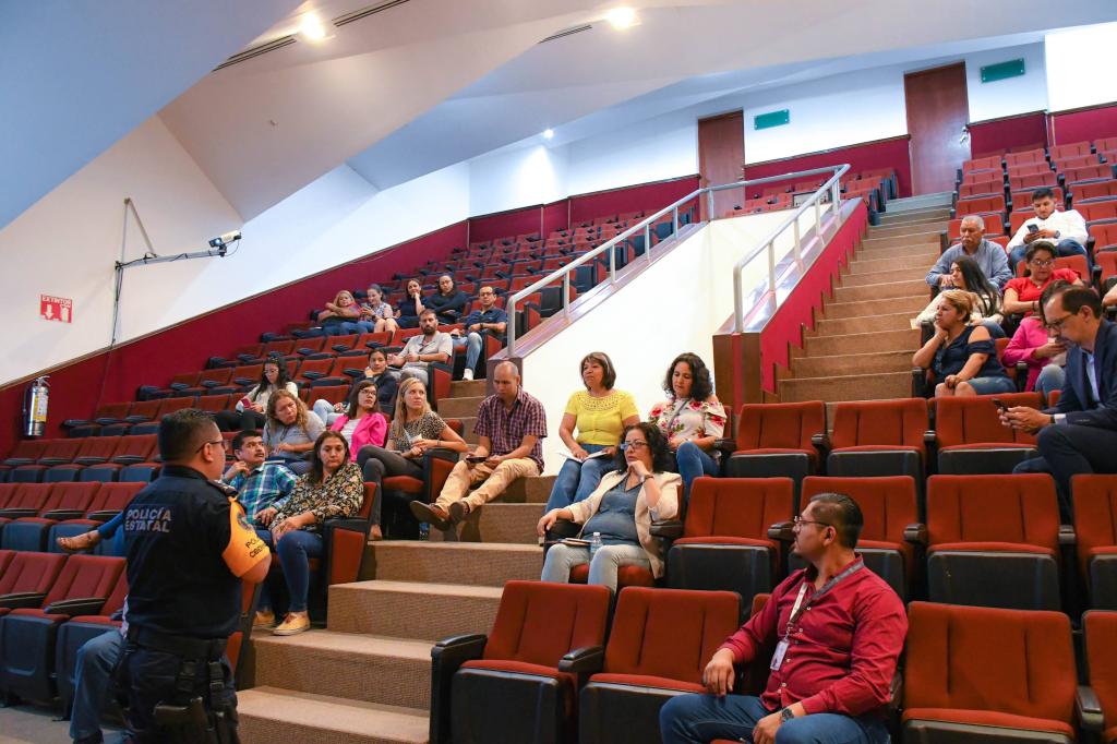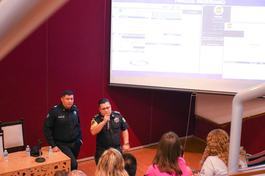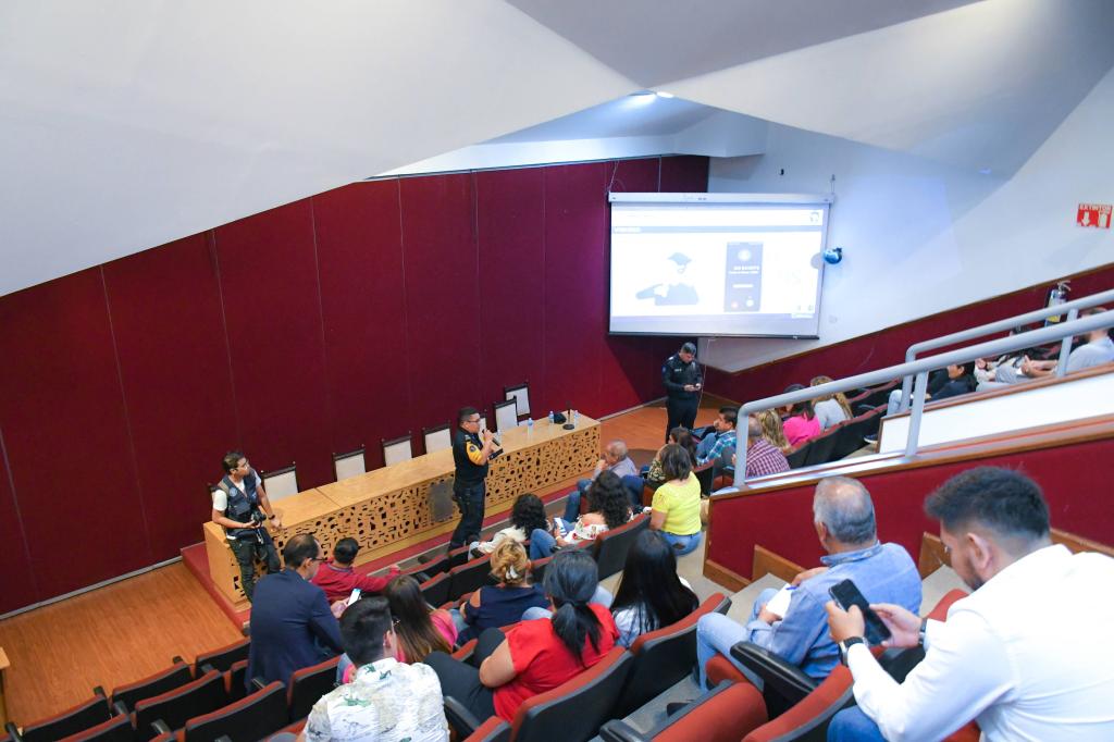La capacitación que se impartió en el Auditorio Pedro García Rojas consistió en tres módulos: Prevención y extorsión en llamadas telefónicas y servicios de mensajería; Prevención de ataques cibernéticos en cuentas de correos electrónicos; y Blindaje de información en equipos de cómputo.