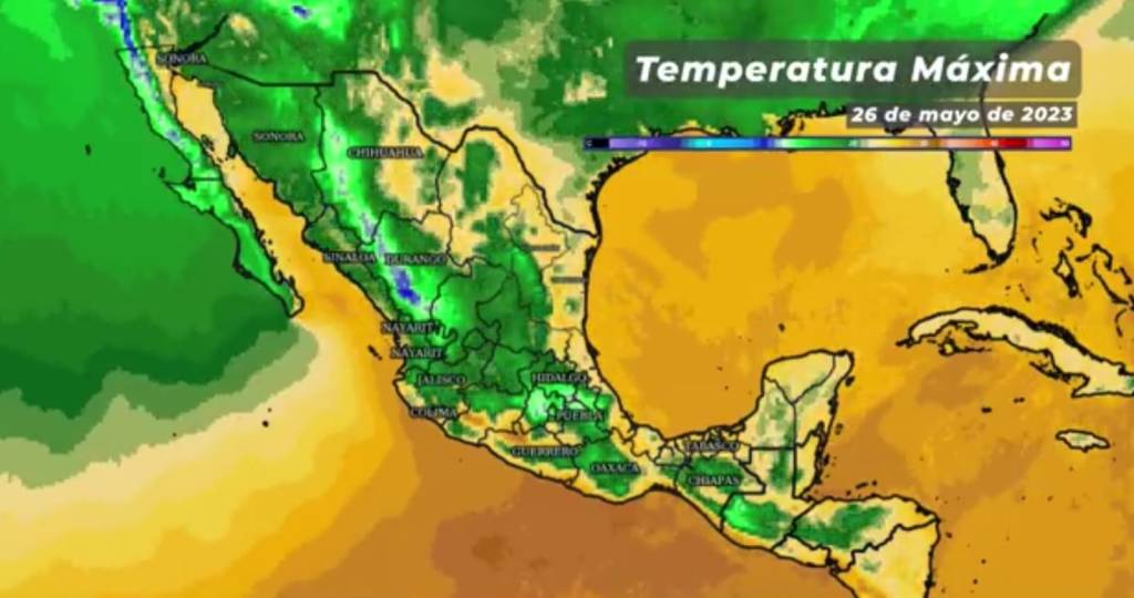 La Comisión Nacional del Agua (Conagua), fuente oficial del Gobierno de México, pronosticó para este día temperaturas máximas de 40 a 45°C en Colima, Jalisco, Michoacán y Guerrero Nayarit y Sinaloa, mientras las mínimas descenderían de 0 a 5°C en zonas montañosas de Baja California, Chihuahua y Durango. También reportó probables lluvias aisladas (0.1 a 5 mm) en Colima y Tabasco.