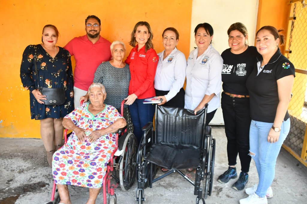 Así, Margarita Moreno entregó 6 aparatos de movilidad, como silla de ruedas y andadores, para habitantes en estado de vulnerabilidad de la comunidad de Cardona, así como una silla de ruedas para un vecino de la colonia La Estancia.